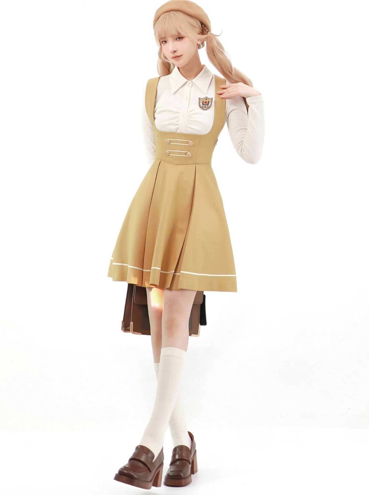 この愛らしいカレッジサスペンダーブラウススカートバッジは、おしゃれに敏感な学生にぴったりです。サスペンダーがクラシックなブラウスとスカートの組み合わせに遊び心をプラスし、キュートでスタイリッシュな印象を与えます。学校のイベントやキャンパスでのカジュアルな日にもぴったりです。