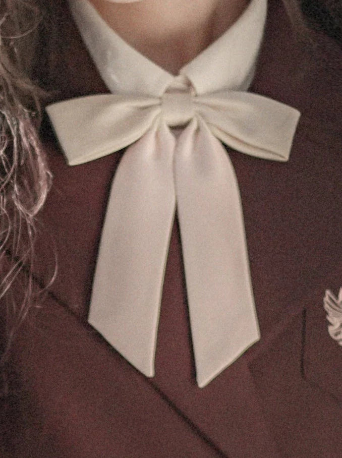 カレッジベストスカート シフォン + シャツスタイル クリームアクセサリー インナーリボン Vネック