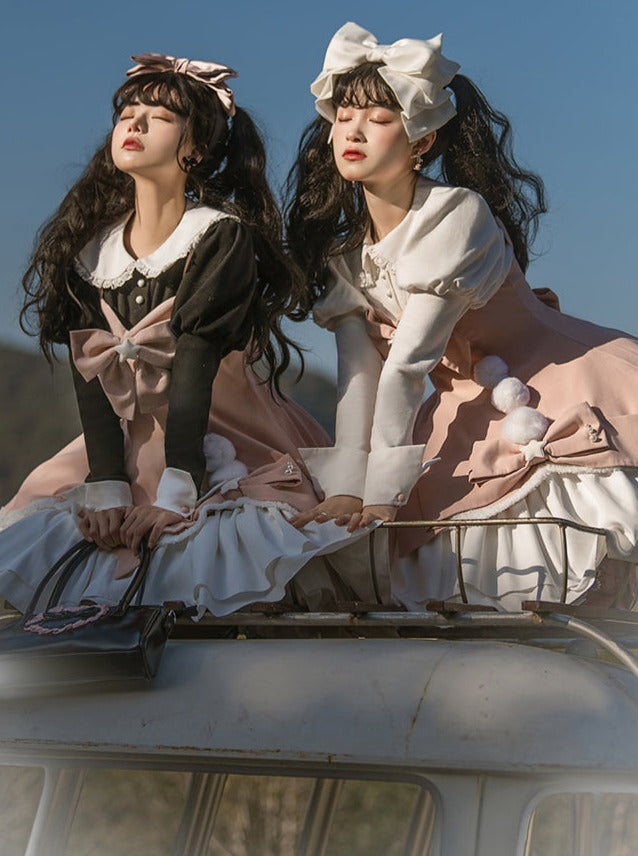 黒と白のオールドスクールロリータファッションドレス蝶結びロリータJSKセット