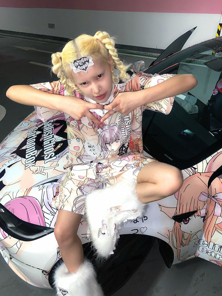 青と白のオールドスクールロリータファッションドレス 蝶結びディテール JSK セット