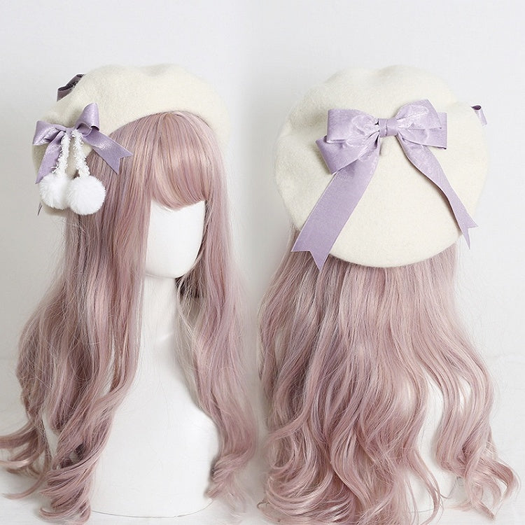 Colors 6 With Pom-Poms Cute Girly-Style White Cream Beret Bowknot