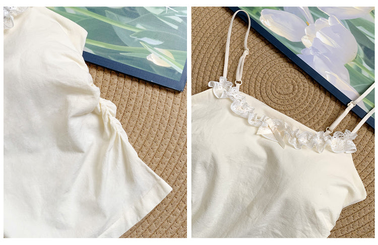 ●フリルトリム / 細いショルダーストラップ / ワイヤーカップ付き