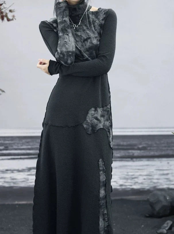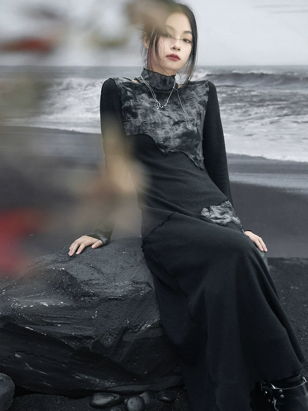 コントラストのあるインナーカラーとテクスチャード加工の裾が特徴のこのドレスは、どんな装いにもキュートなアクセントを添えます。ハイネックラインとボトルネックデザインが、個性的でスタイリッシュな印象を演出します。どんなシーンにもぴったりです。