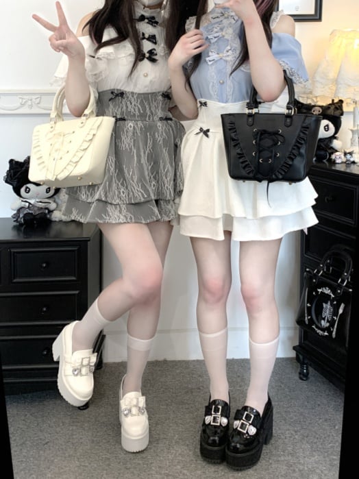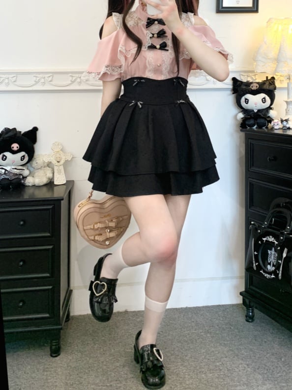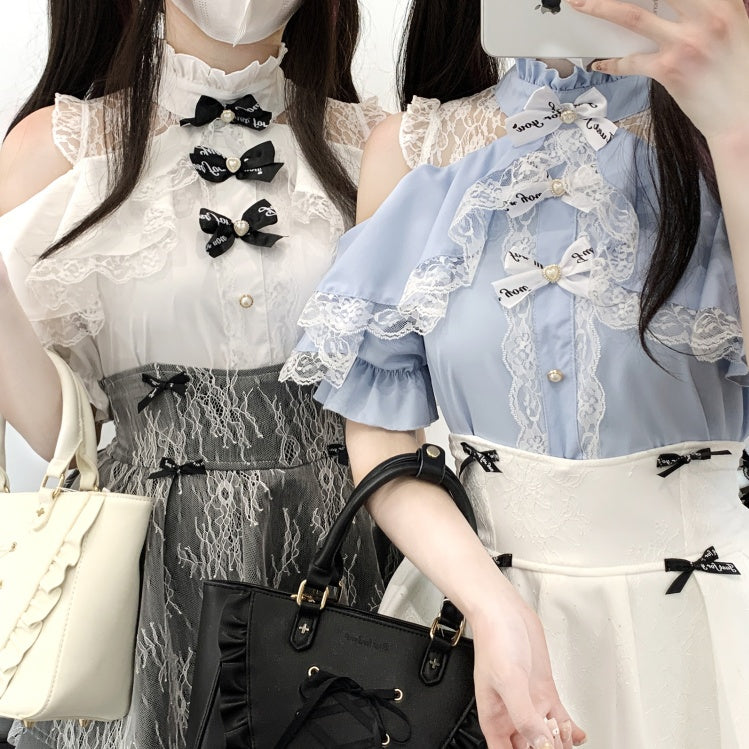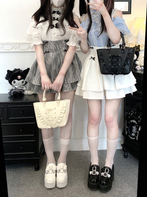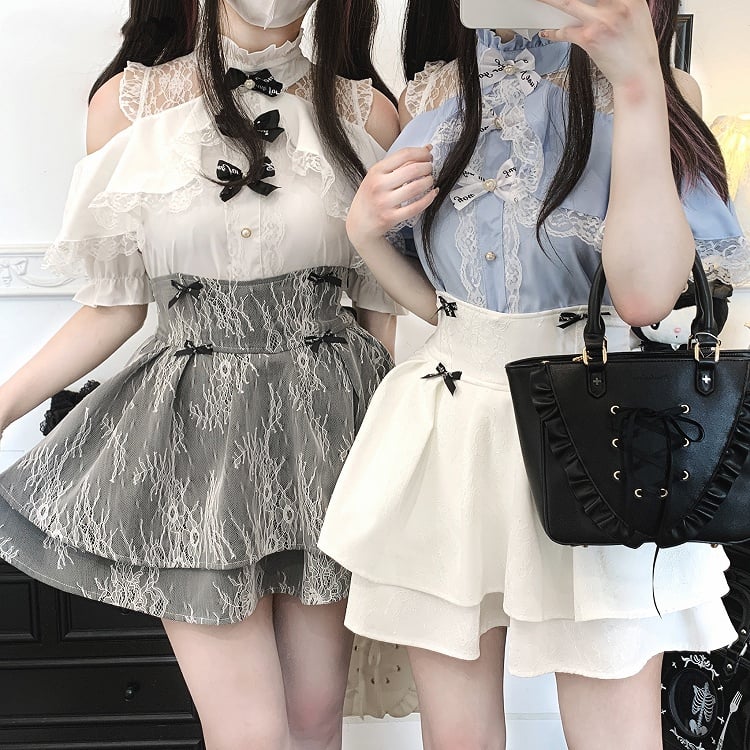 ● 蝶結びのディテール / コントラストのレースパッチ / カットアウトショルダー / レーストリム