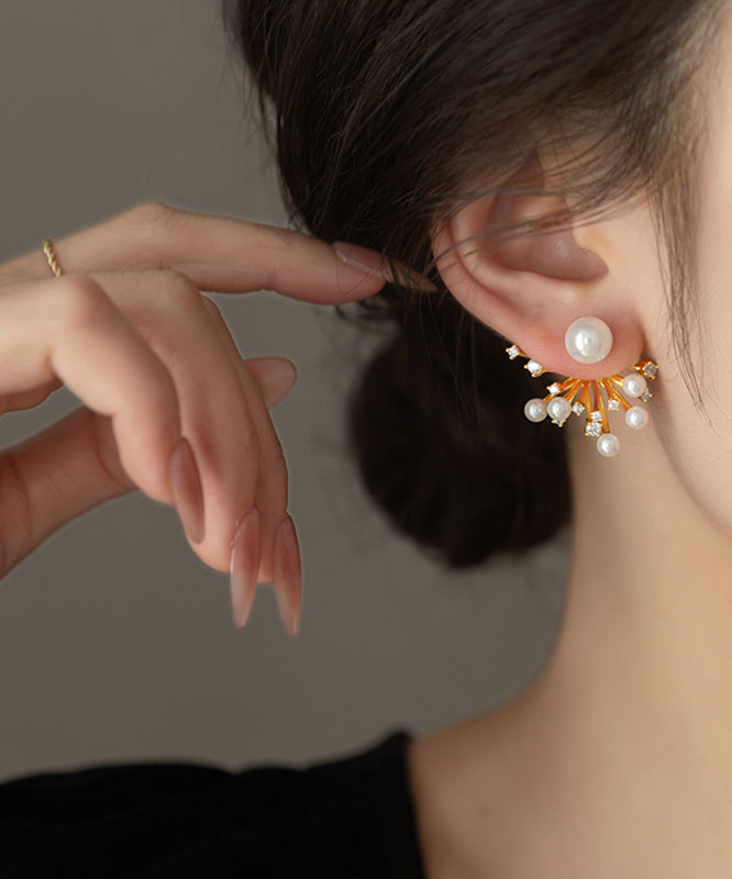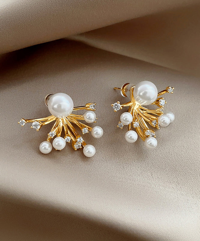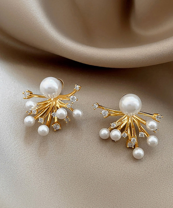 上品なゴールド銅メッキジルコンパール花火スタッドイヤリング