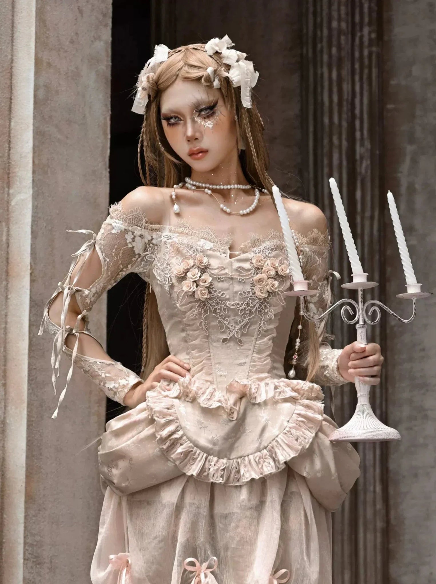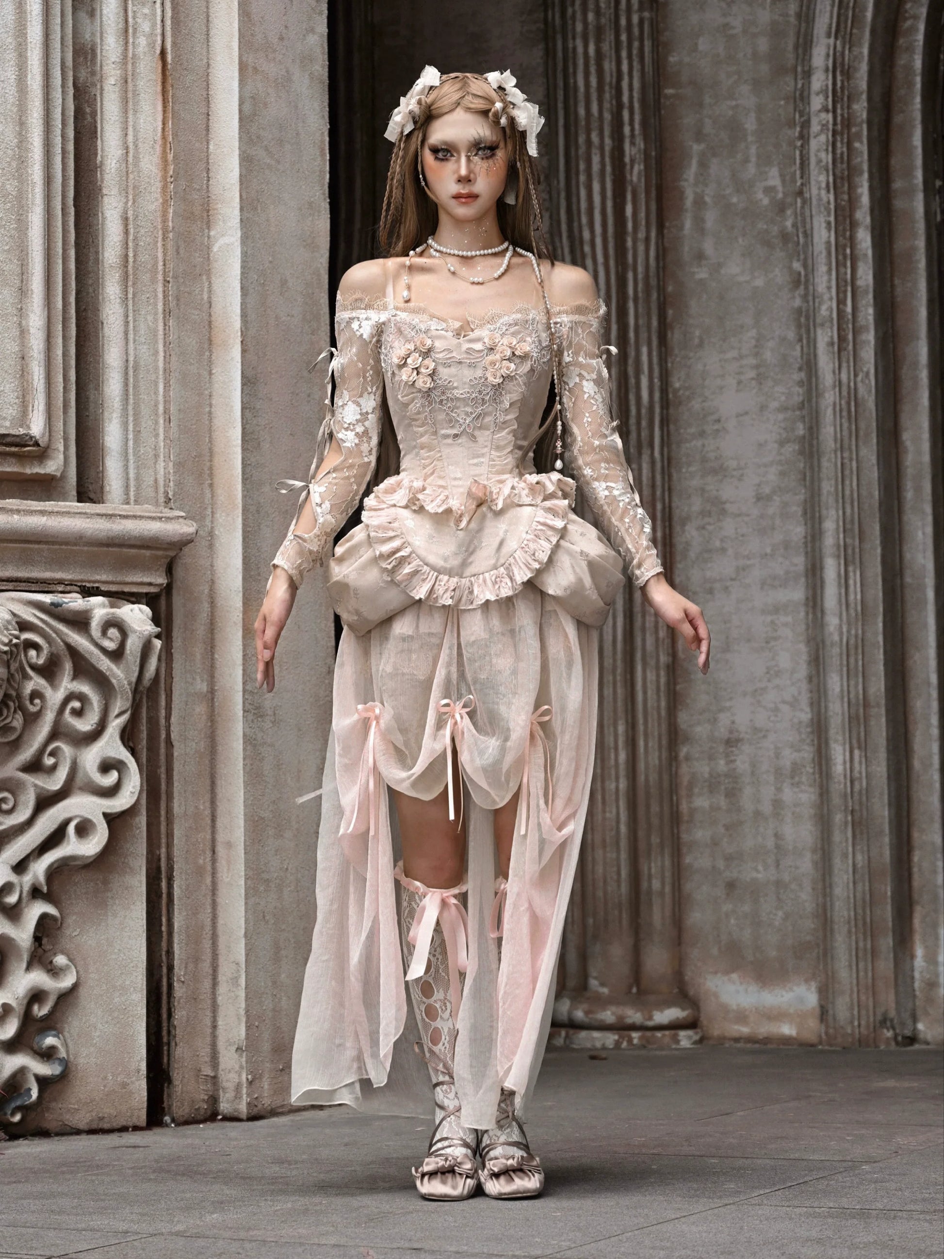 ホワイトとピンクのロリータボンネットチョーカー