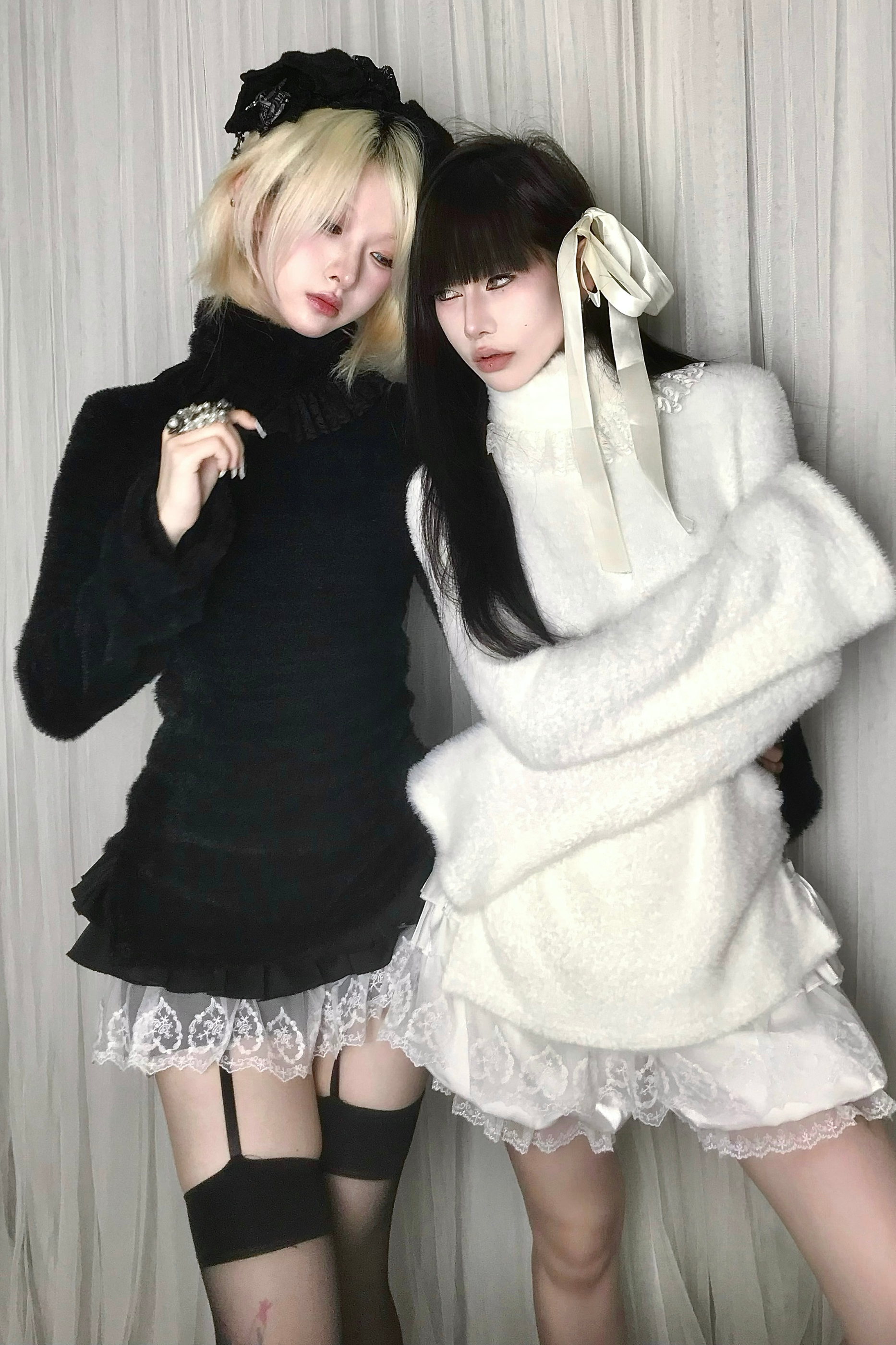 黒と白のオールドスクールロリータファッションドレス蝶結びロリータJSKセット
