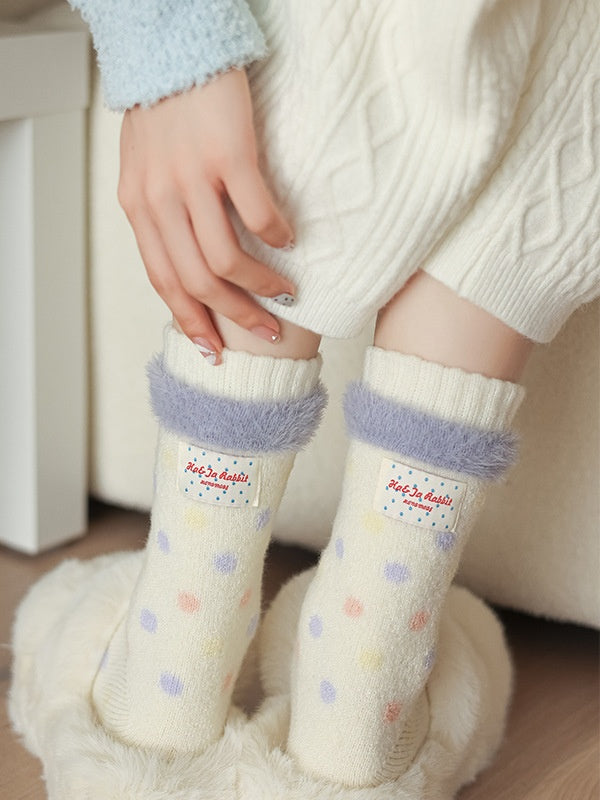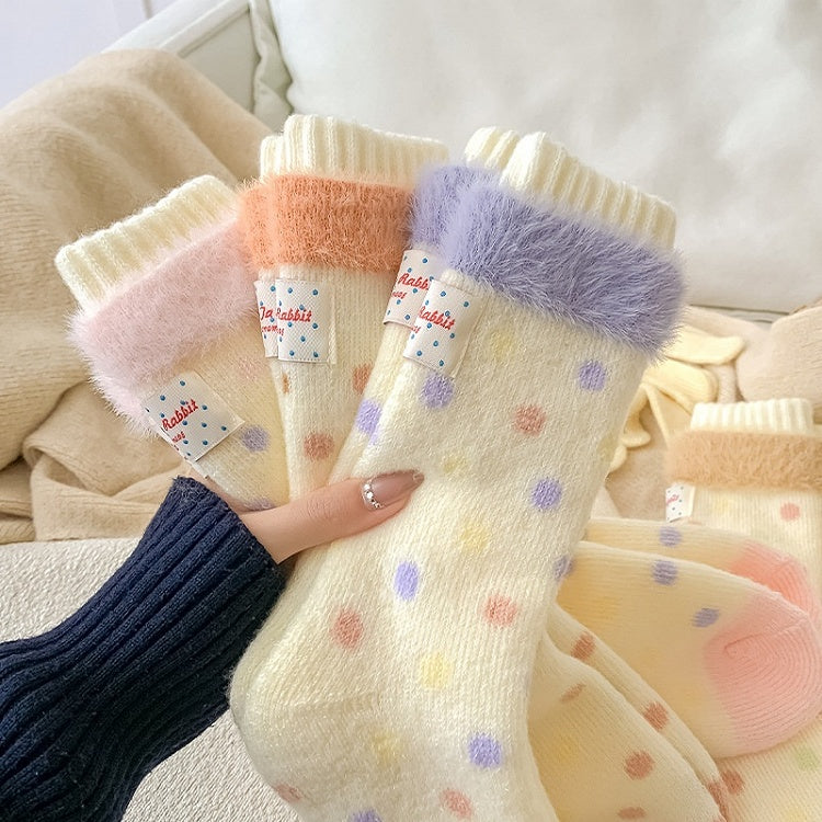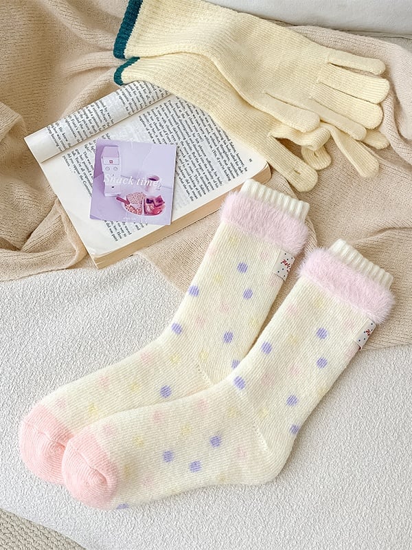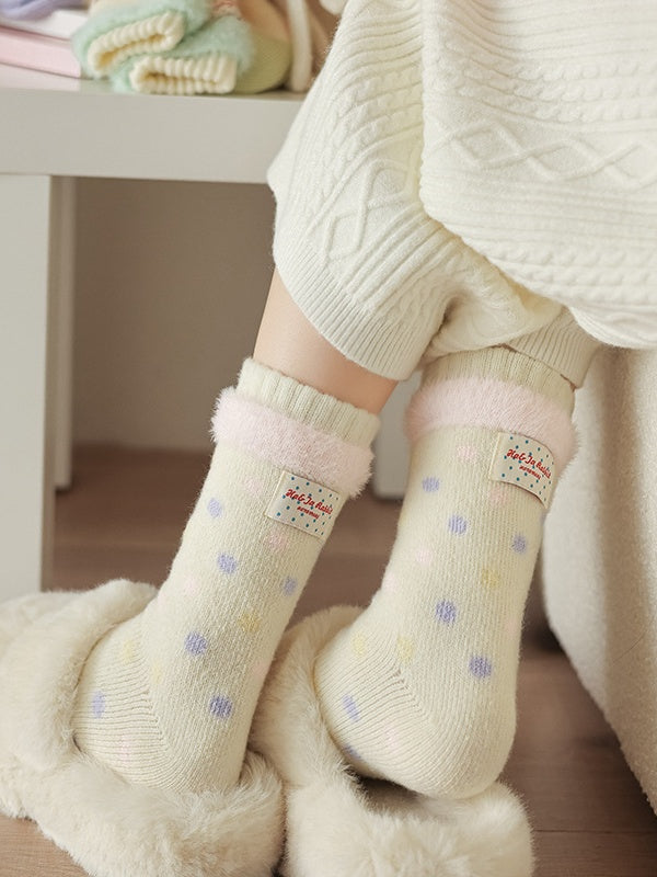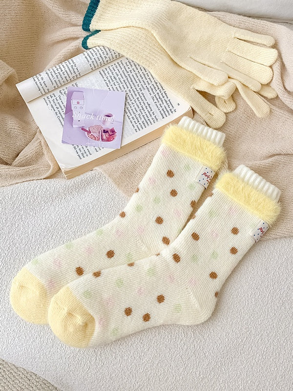 クリーミーな黄色の可愛い水玉模様のふくらはぎソックス
