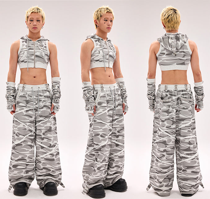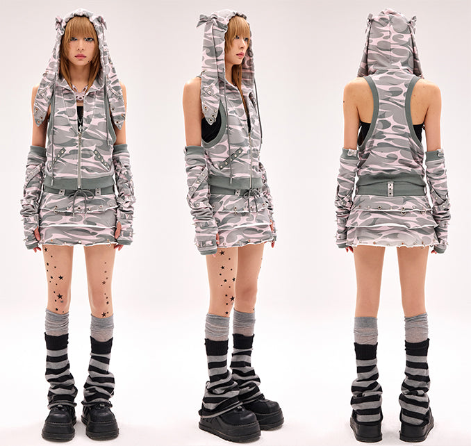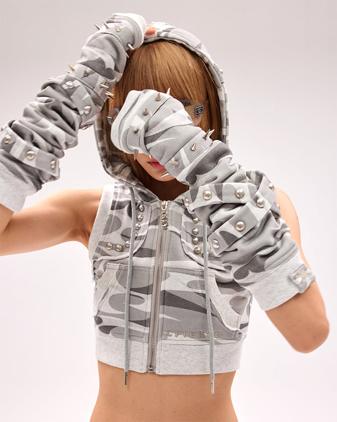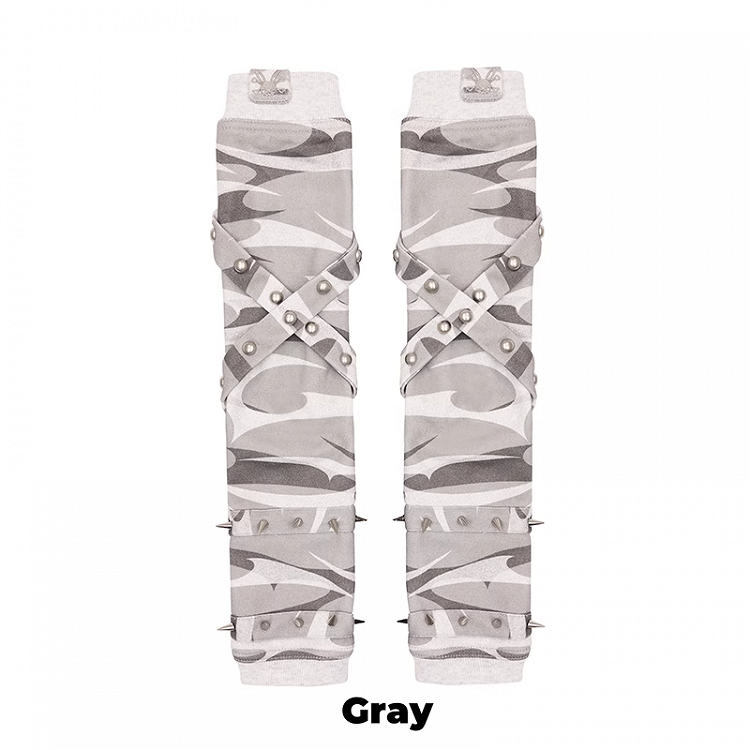 ブラック/グレー/ピンクのクロスストラップスタッズグローブ