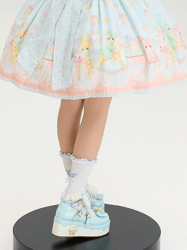 青と白のオールドスクールロリータファッションドレス 蝶結びディテール JSK セット