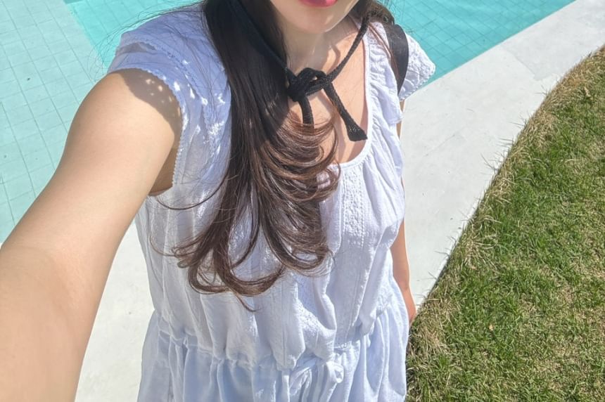 青と白のオールドスクールロリータファッションドレス 蝶結びディテール JSK セット