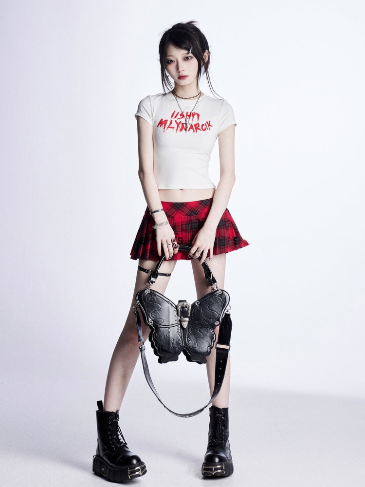 ホワイトレタープリント ビタースイート クロップドTシャツ