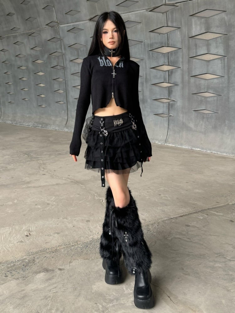 クロスチャームのブラックゴシックパンクリボンとフェイクファーのレッグウォーマーで、ダークなキュートさをコーディネートにプラス。マストハブなアクセサリーで、足を暖かく、可愛く演出。パンク風ルックの完成にも、どんなコーディネートにも遊び心を加えるのに最適です。