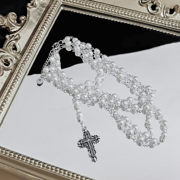 クロスチャーム ホワイトビーズブレスレット