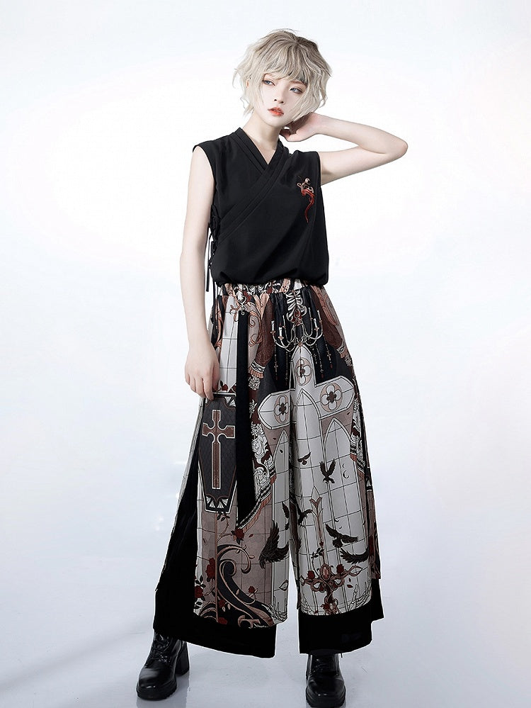 ナイトコマンド クロスプリント ワイドレッグカットパンツ