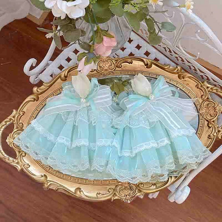 青と白のオールドスクールロリータファッションドレス 蝶結びディテール JSK セット