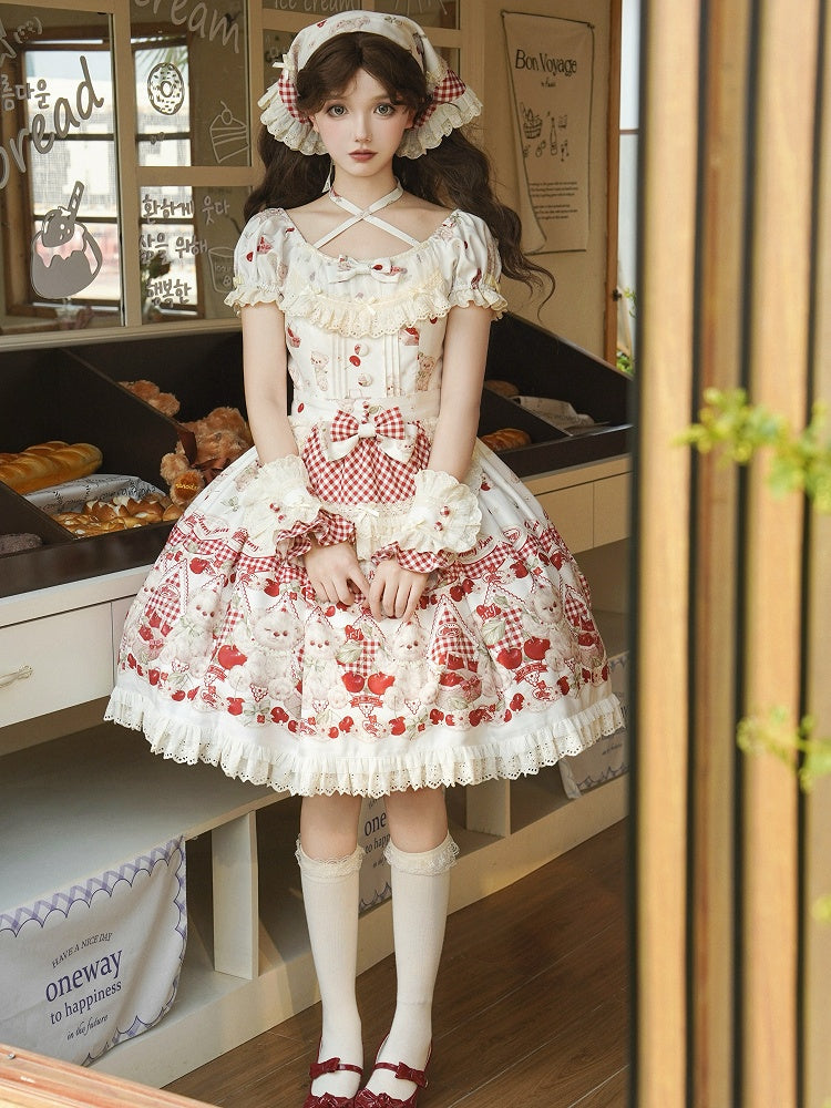 ピンクと白のオールドスクールロリータファッションドレス、蝶結びディテール、ロリータJSKセット