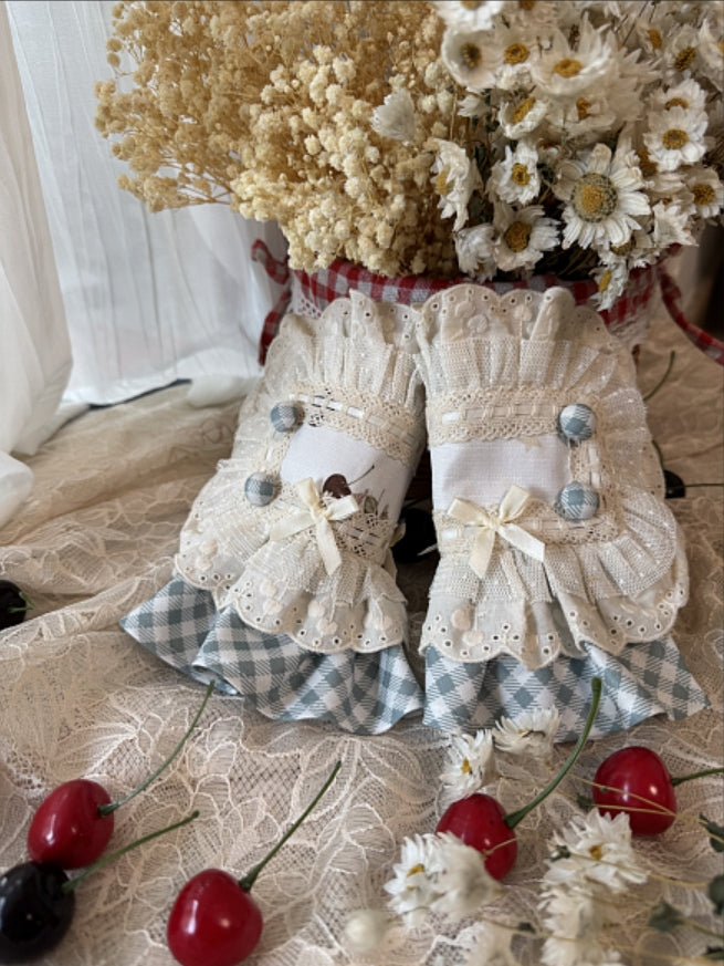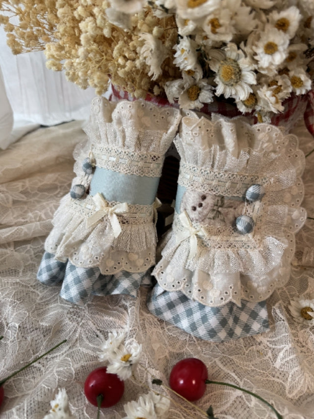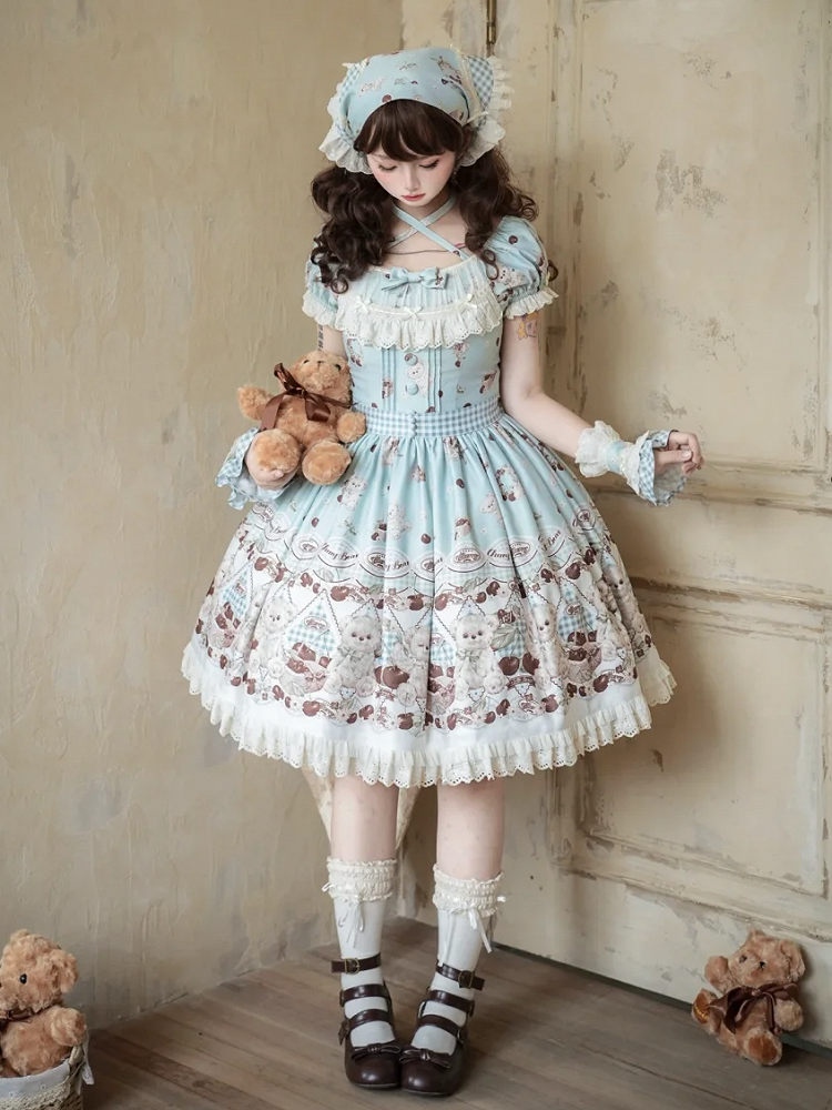 青と白のオールドスクールロリータファッションドレス 蝶結びディテール JSK セット