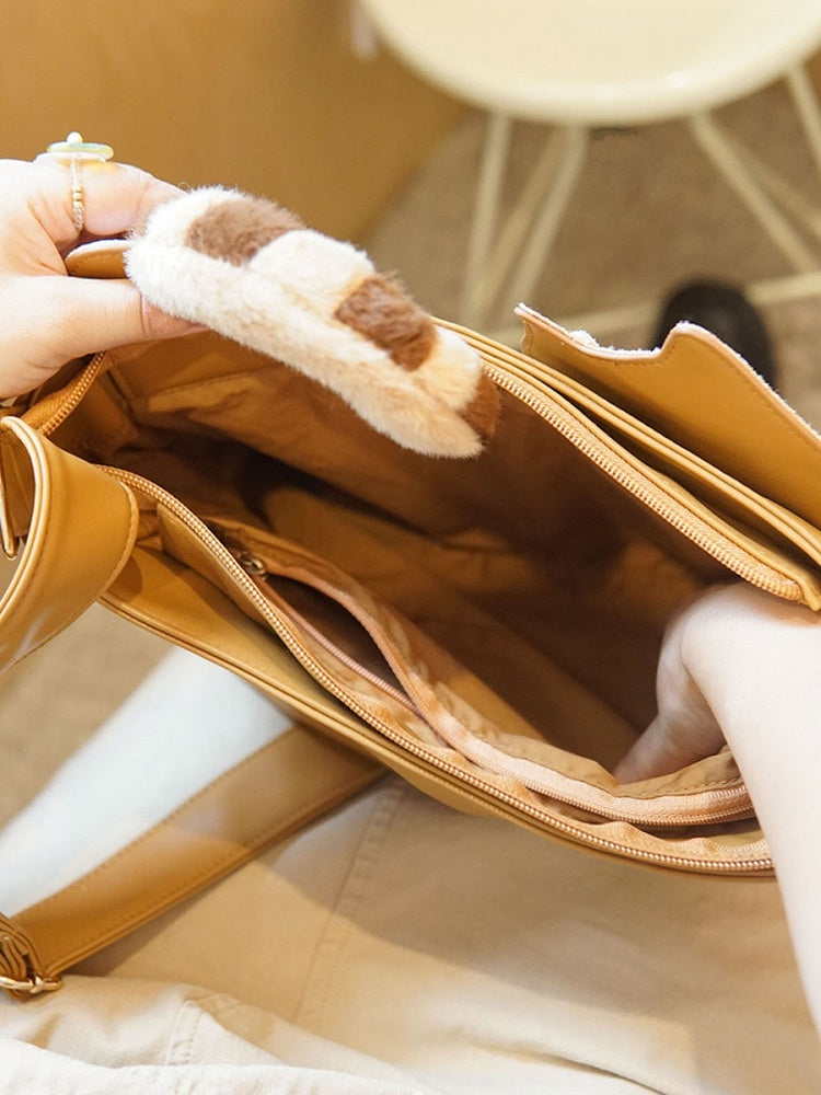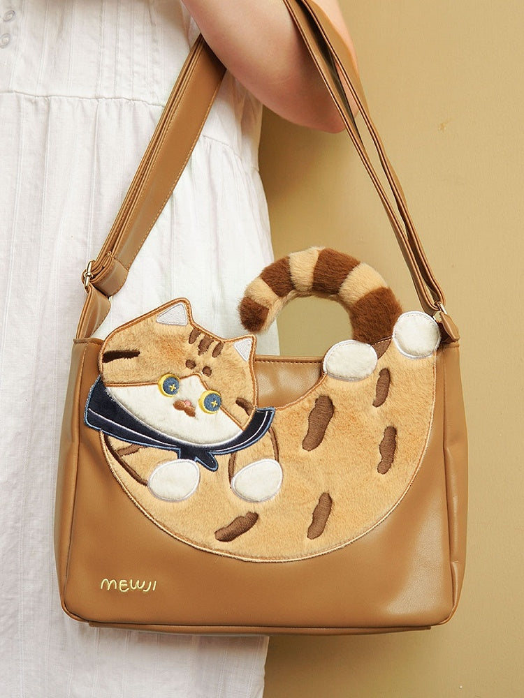 かわいい猫のデザインのブラウンのクロスボディバッグ