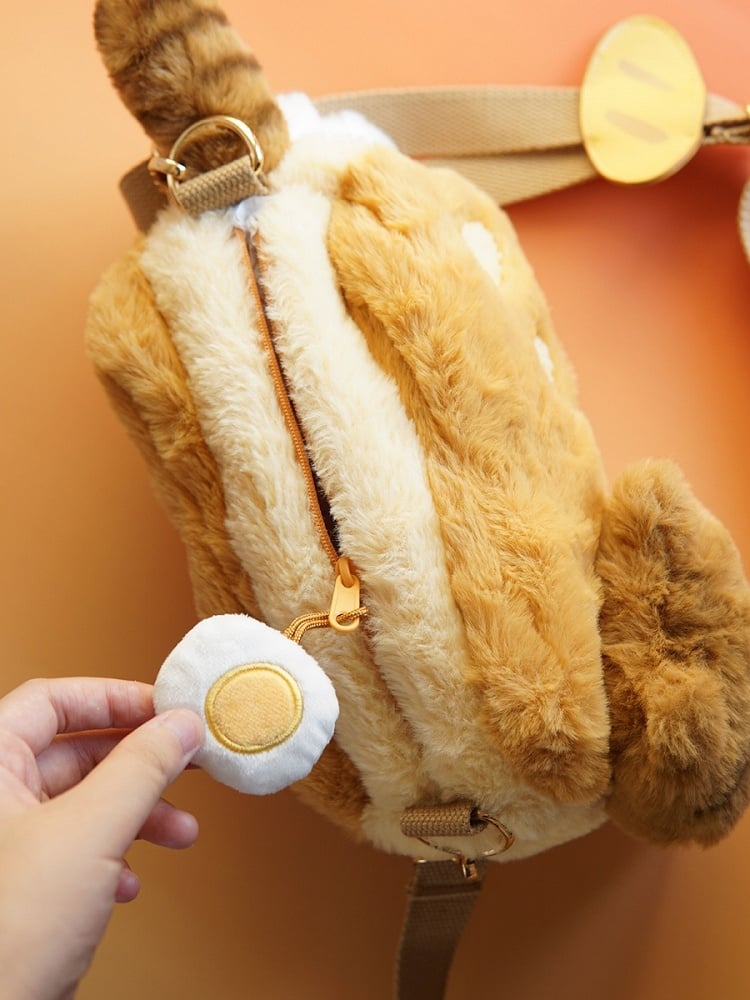かわいい猫の形をした茶色のぬいぐるみクロスボディバッグ