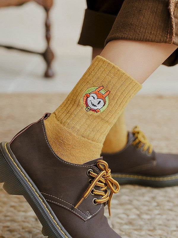 かわいい猫の刺繍入りふくらはぎソックス