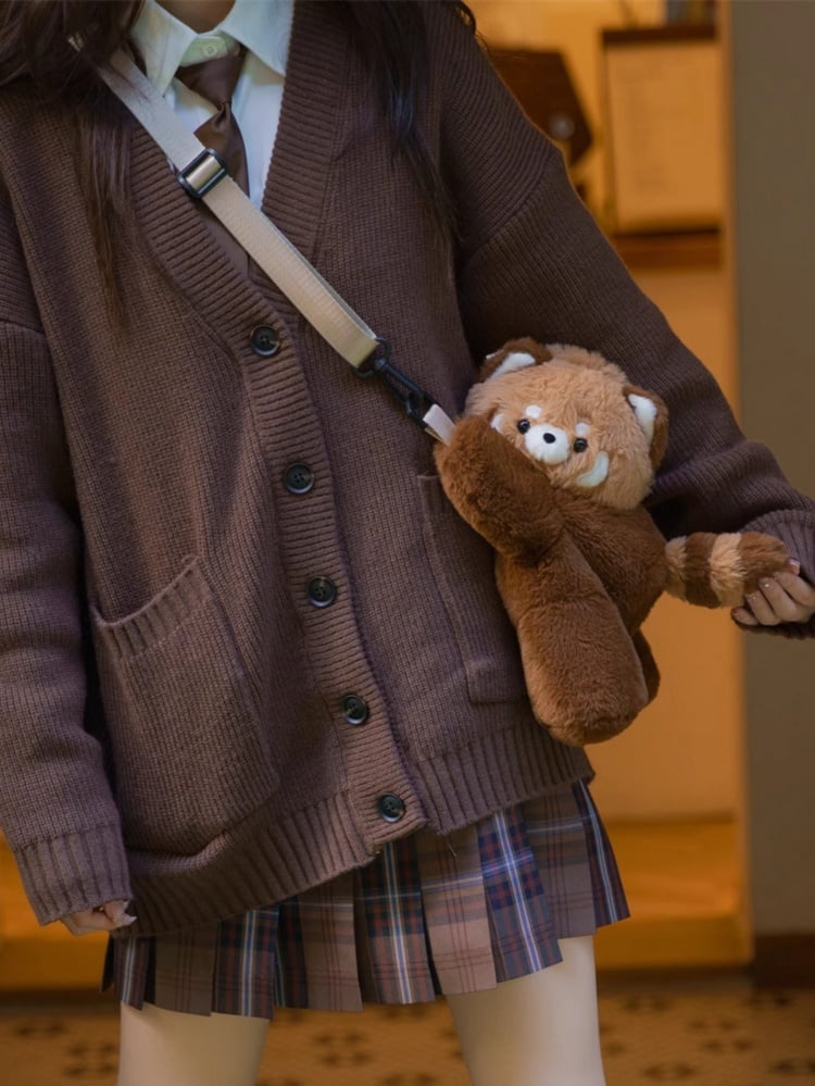 かわいいレッサーパンダのブラウンぬいぐるみバックパック/クロスボディ