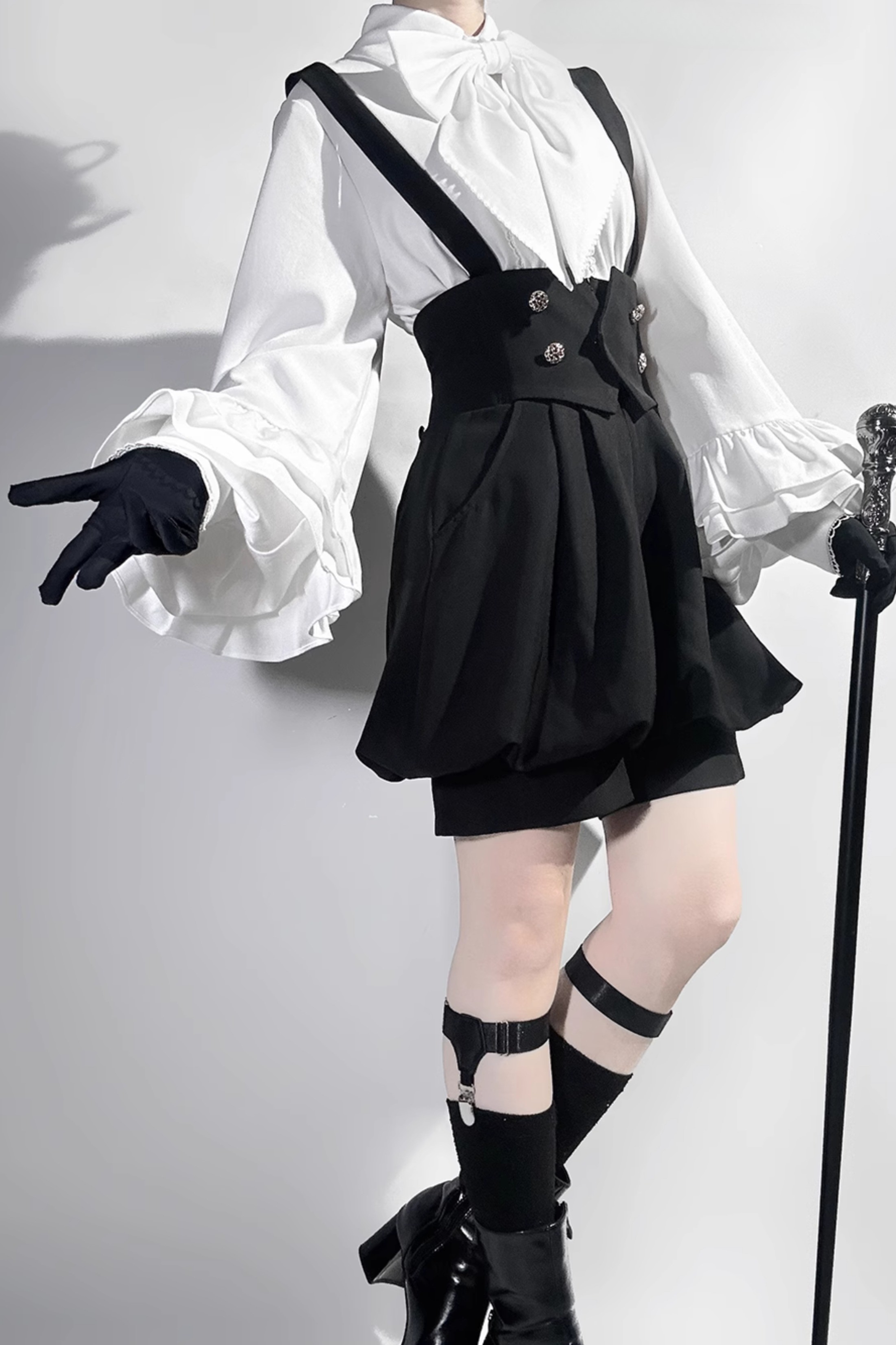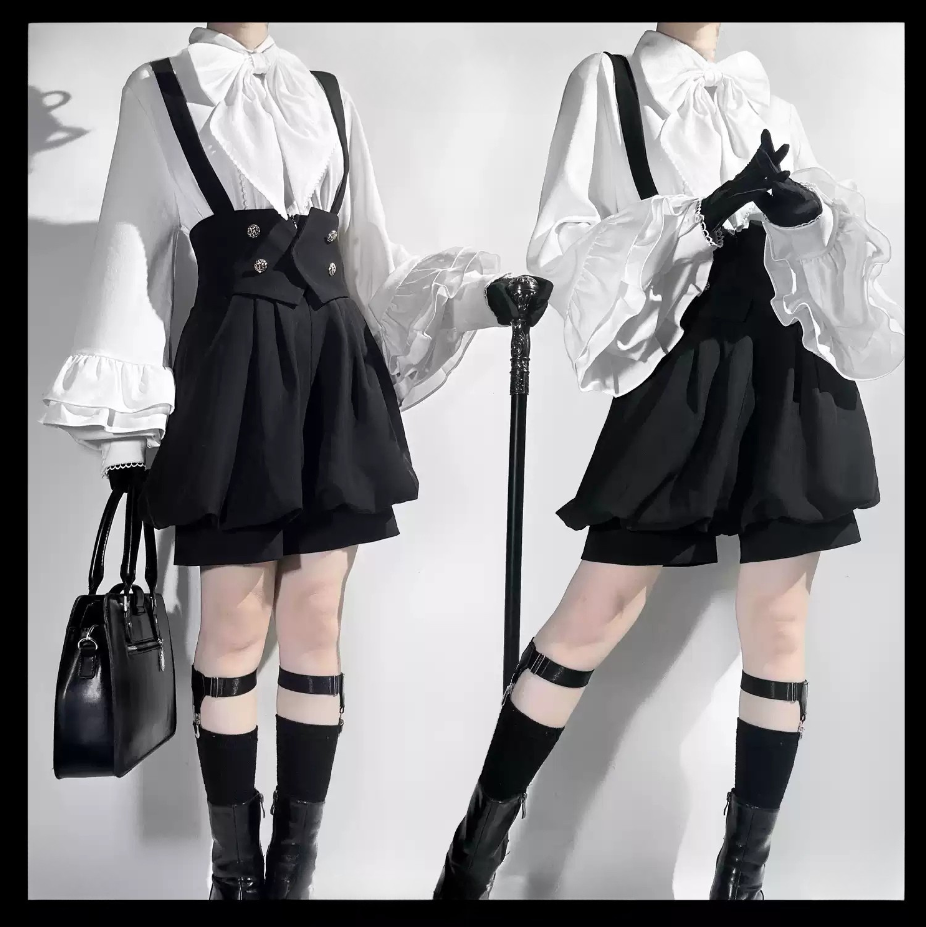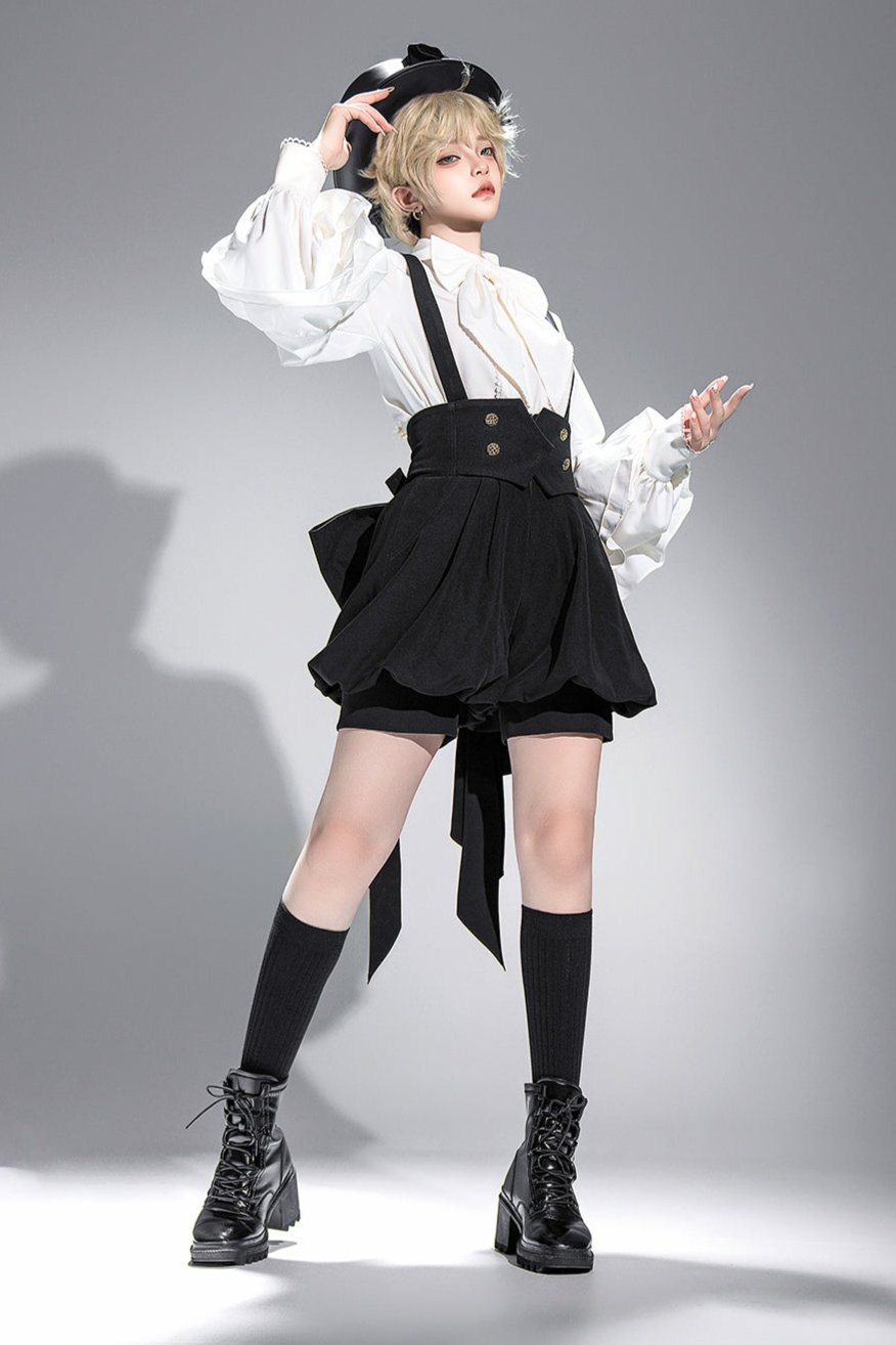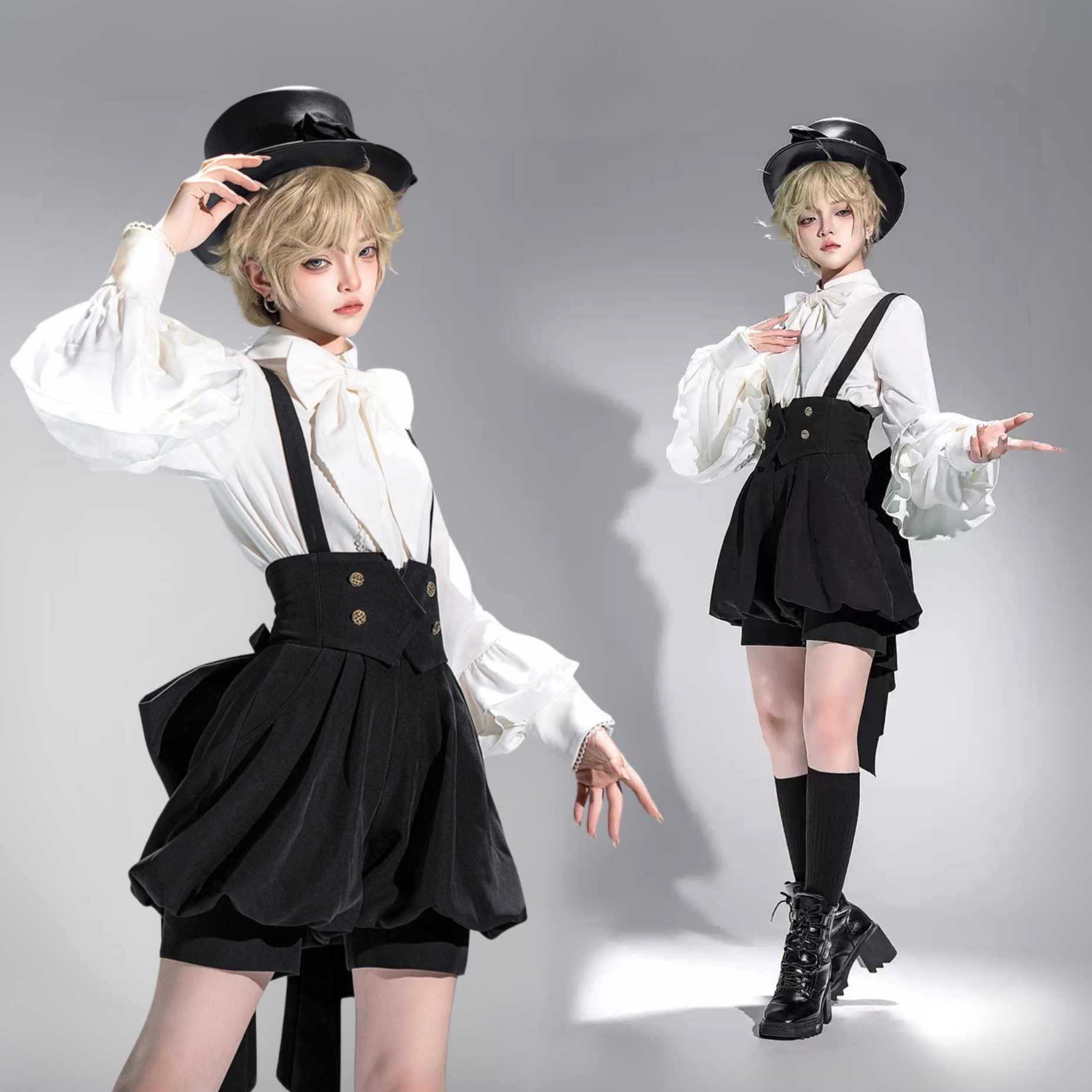 キュート+レトロショートパンツエレガントシャツリボンプリンス予約テールダーク