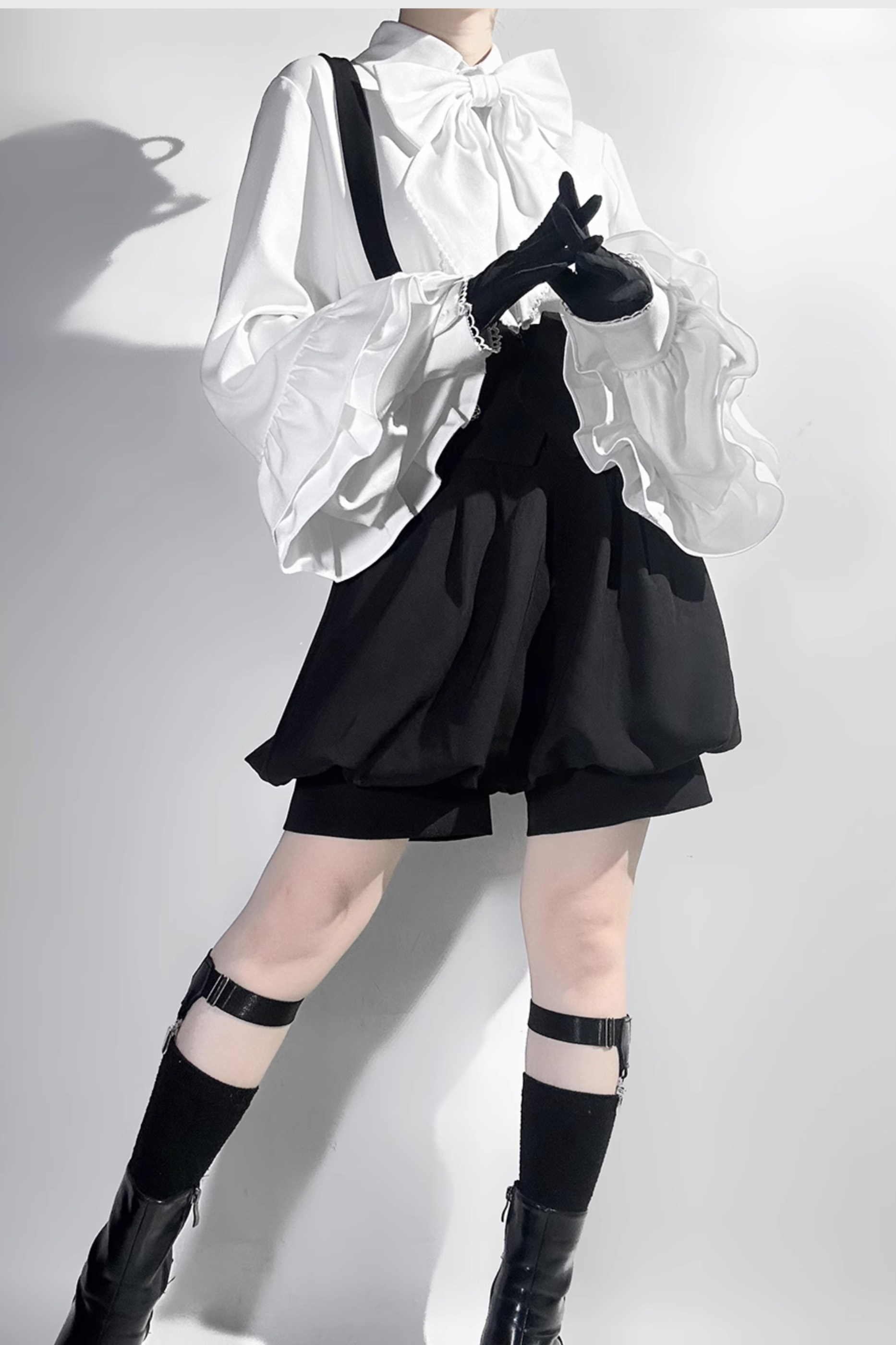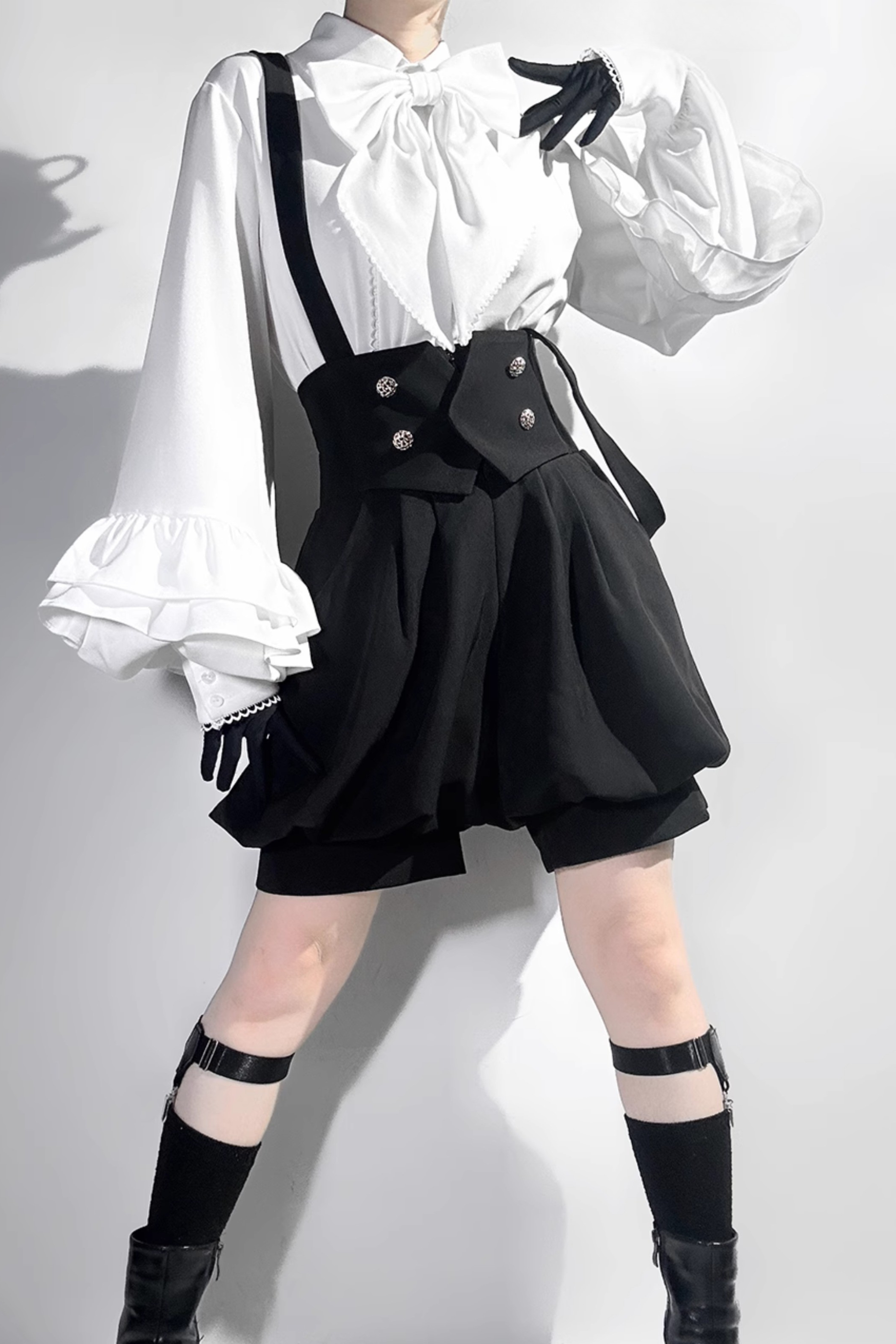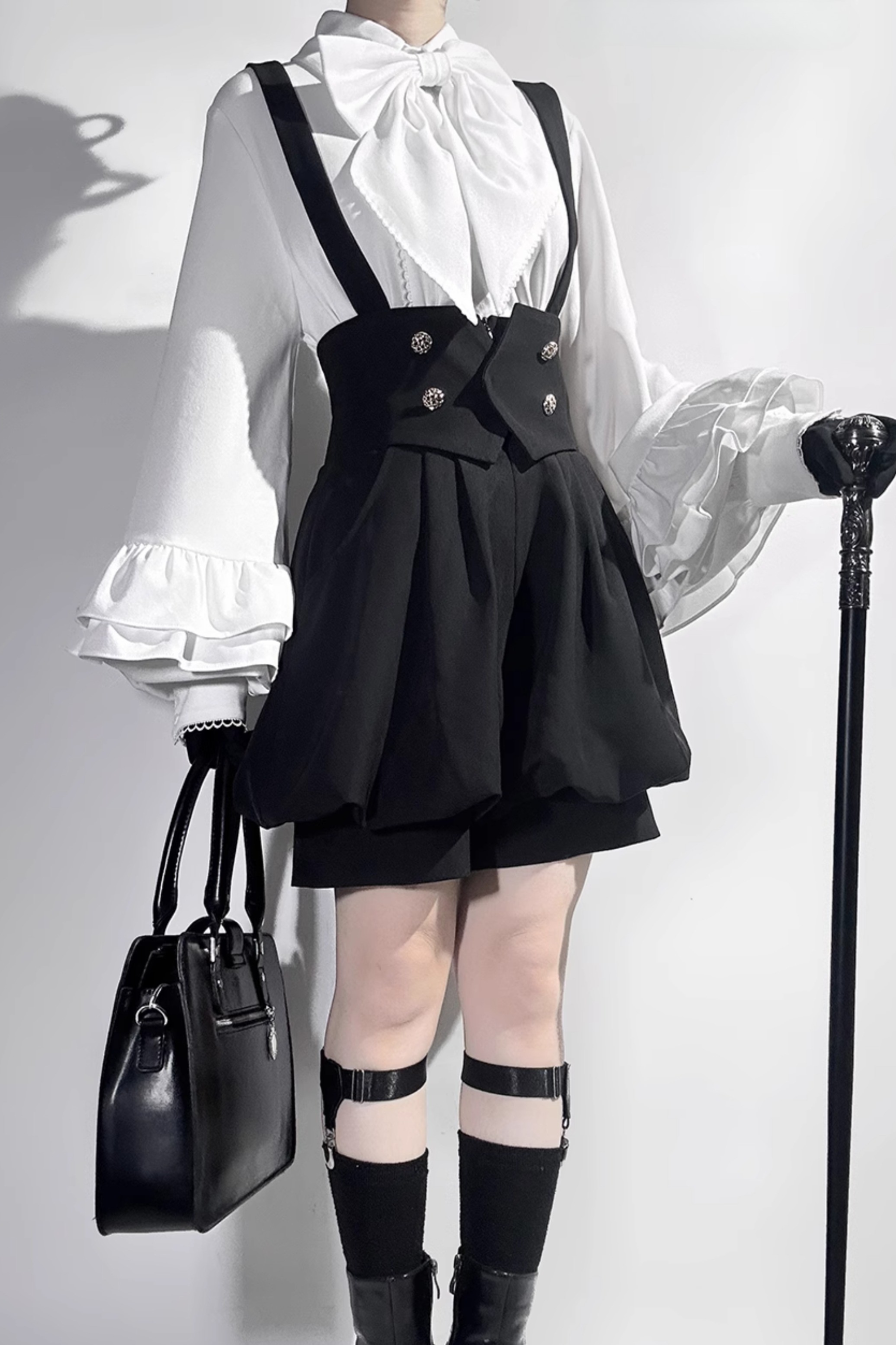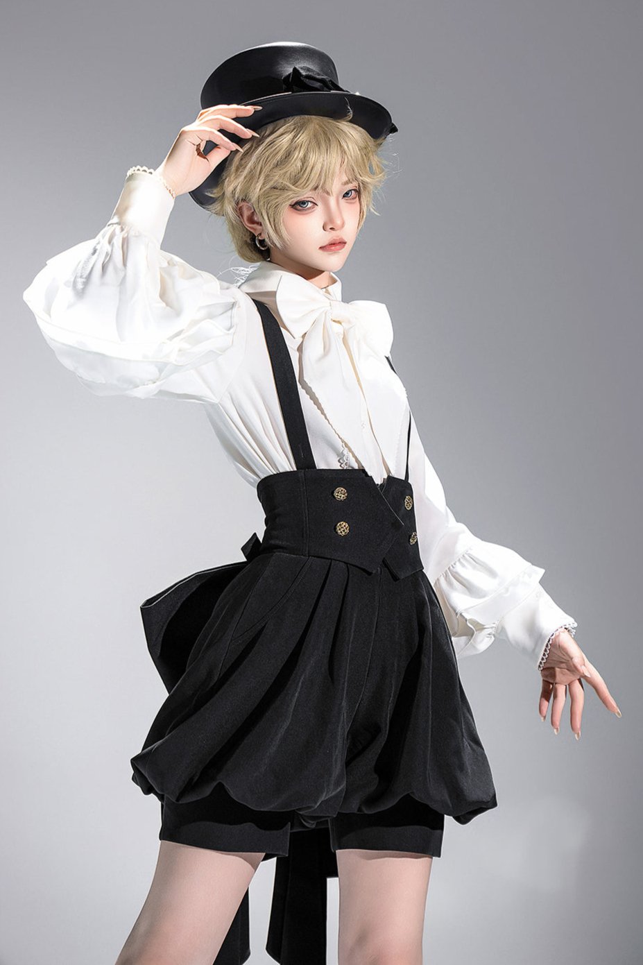 キュート+レトロショートパンツエレガントシャツリボンプリンス予約テールダーク