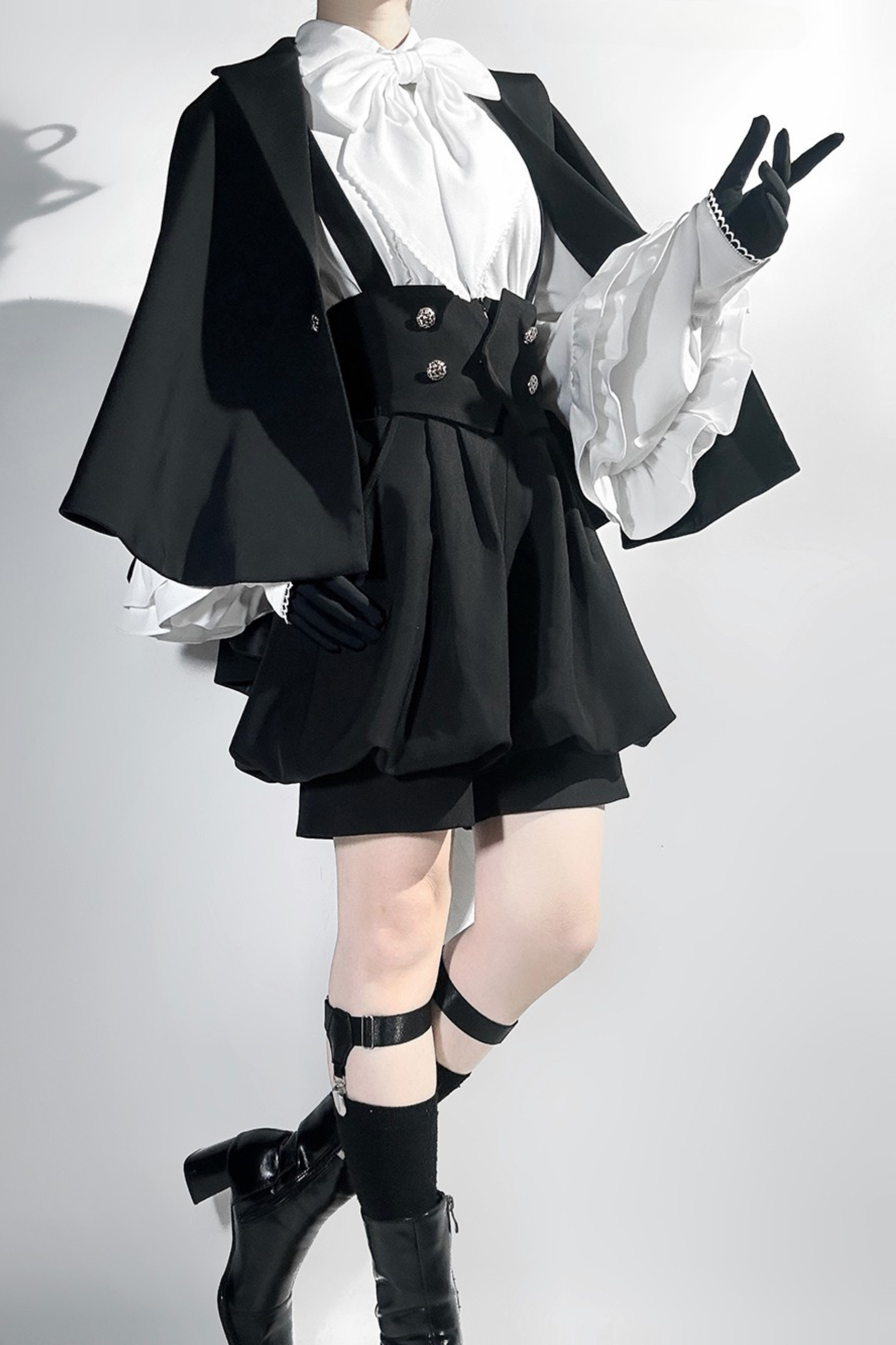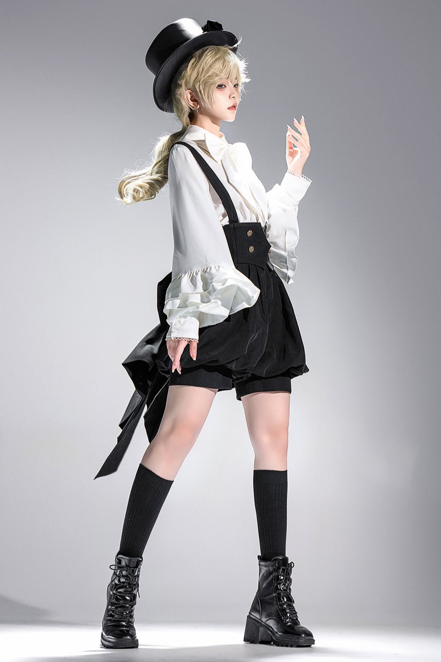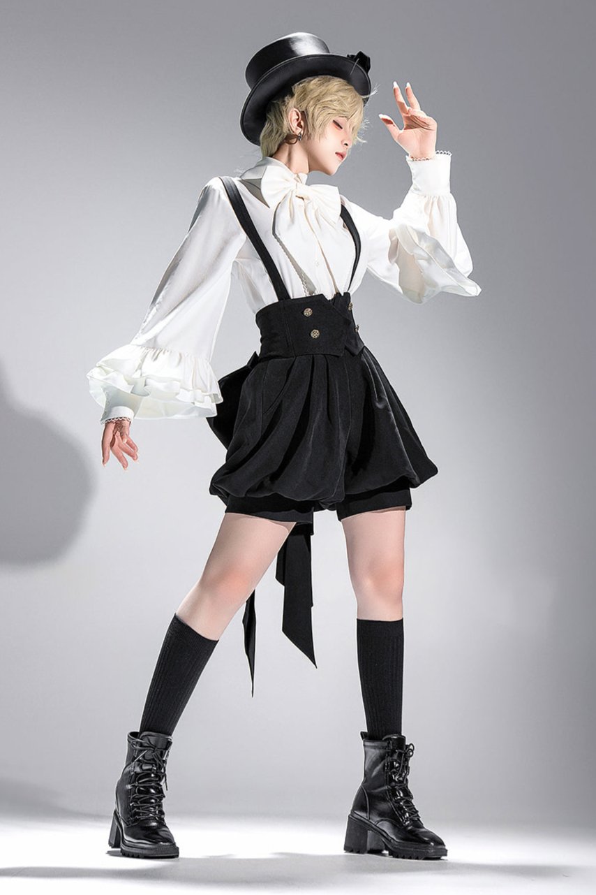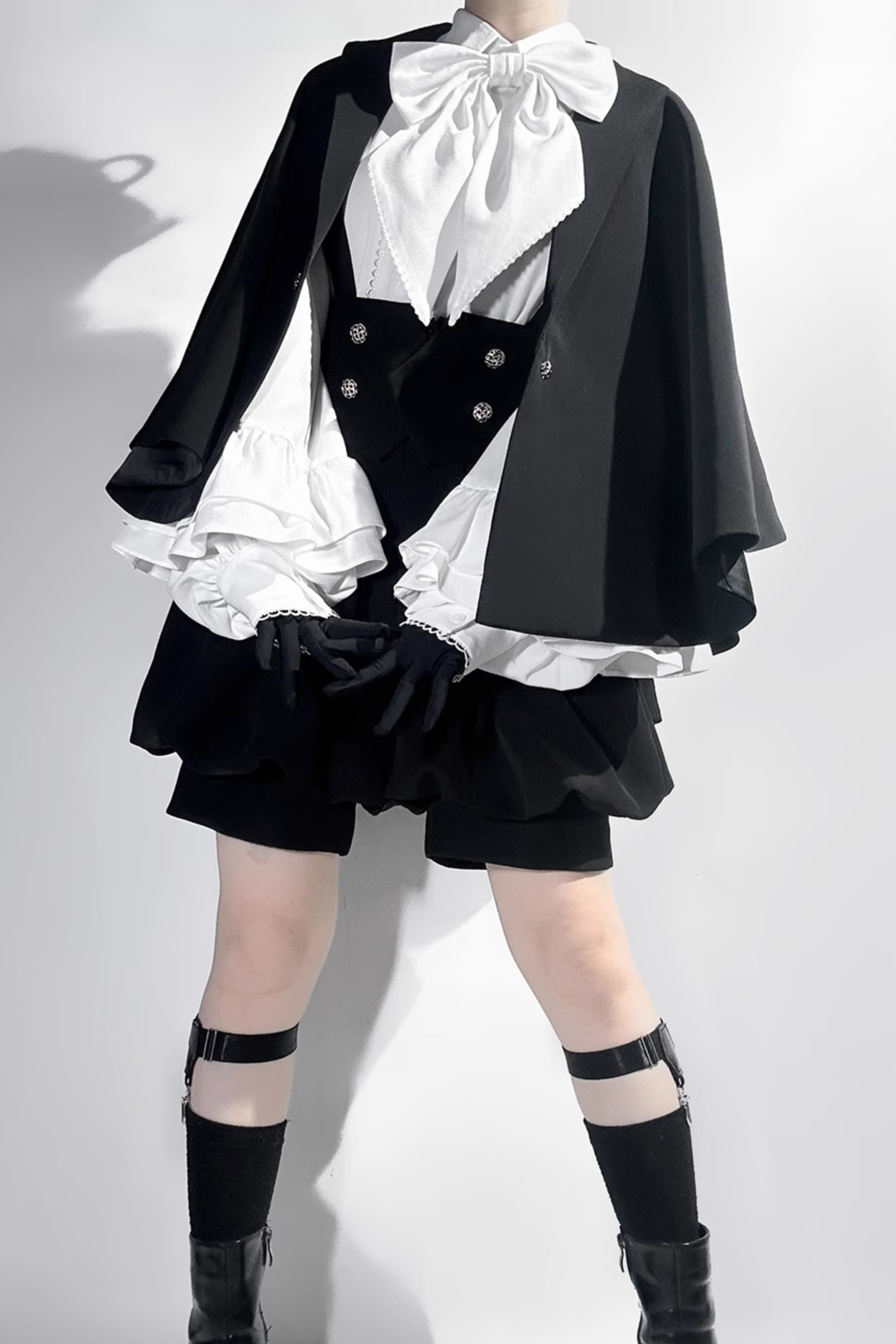 キュート+レトロショートパンツエレガントシャツリボンプリンス予約テールダーク
