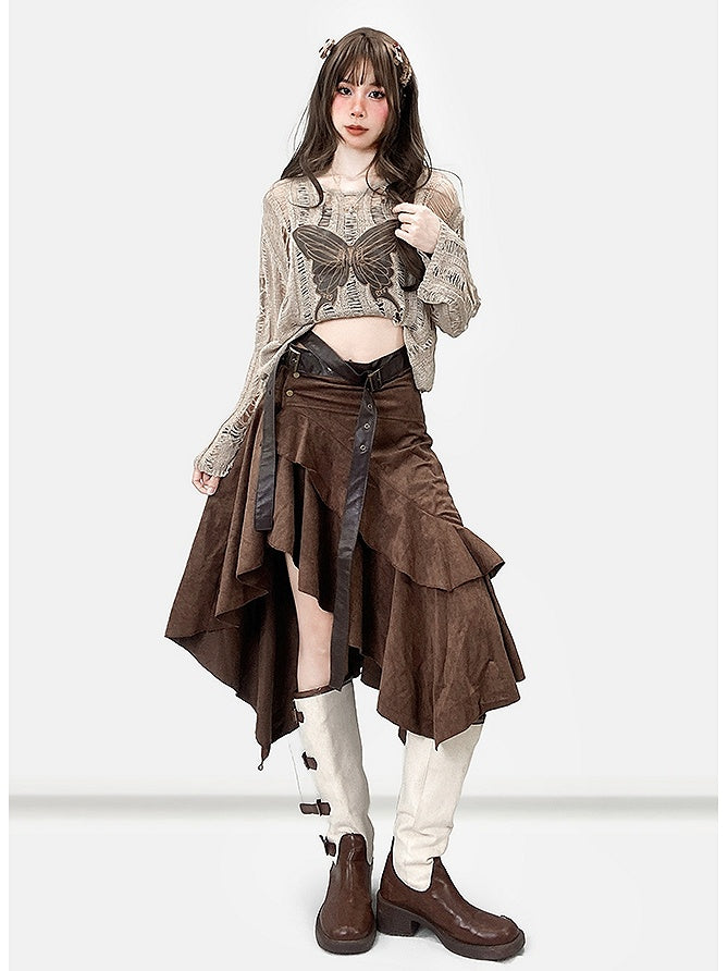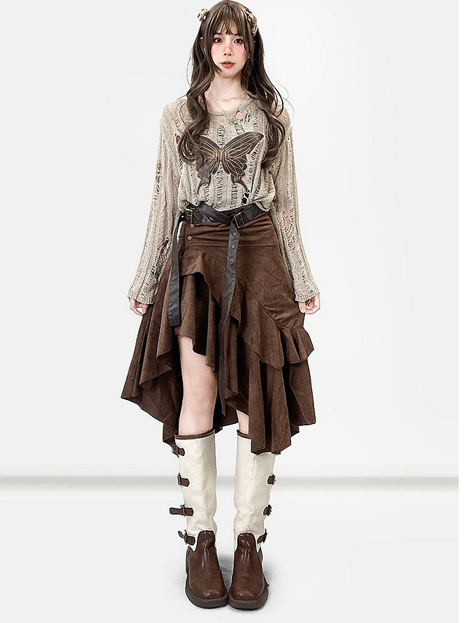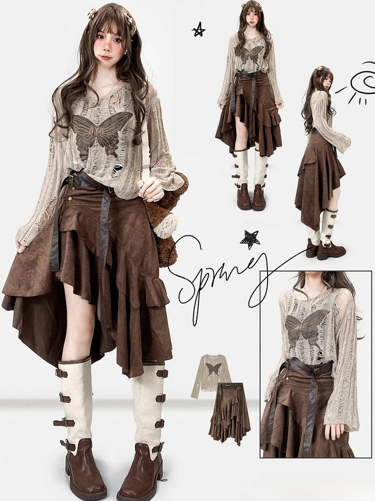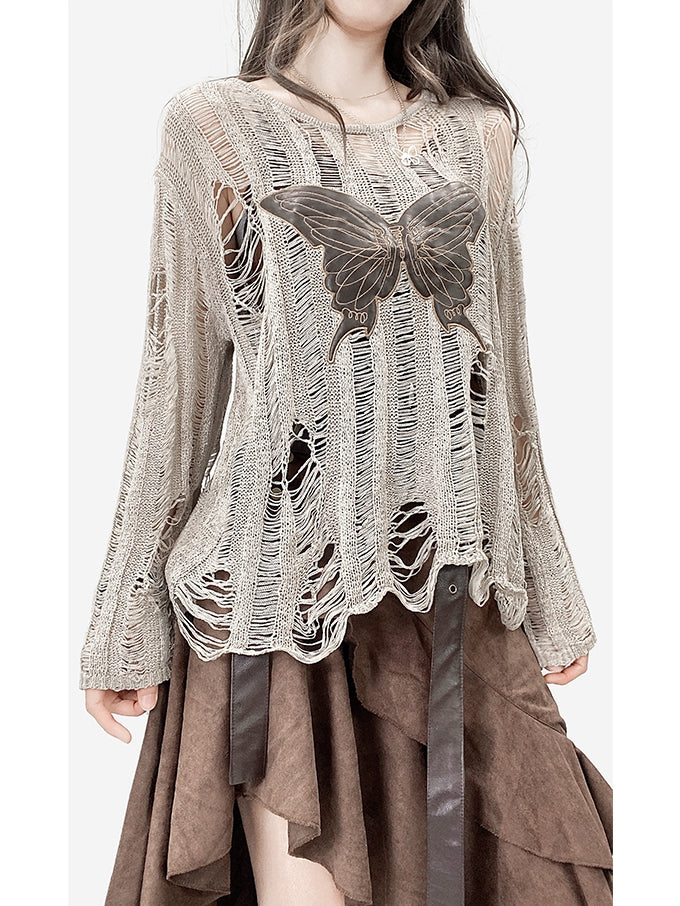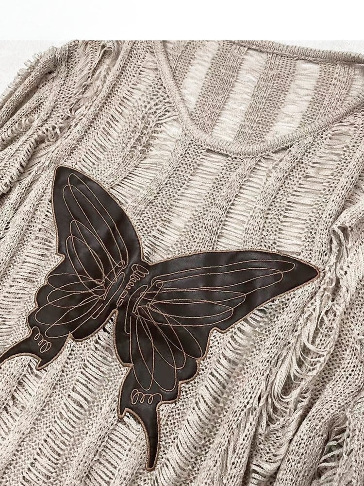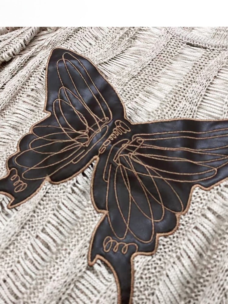 カットアウトバタフライファッションディテールカーキミラードアップリケトップ