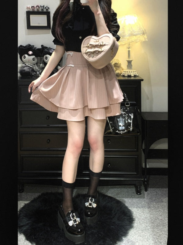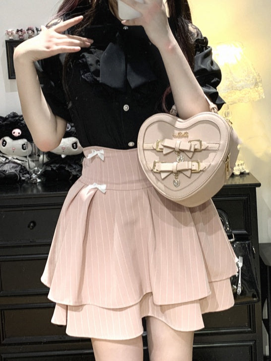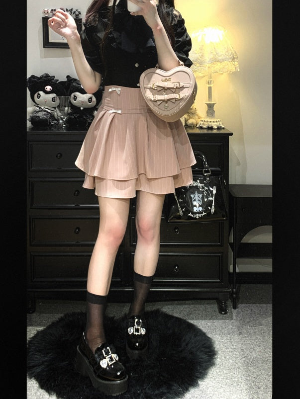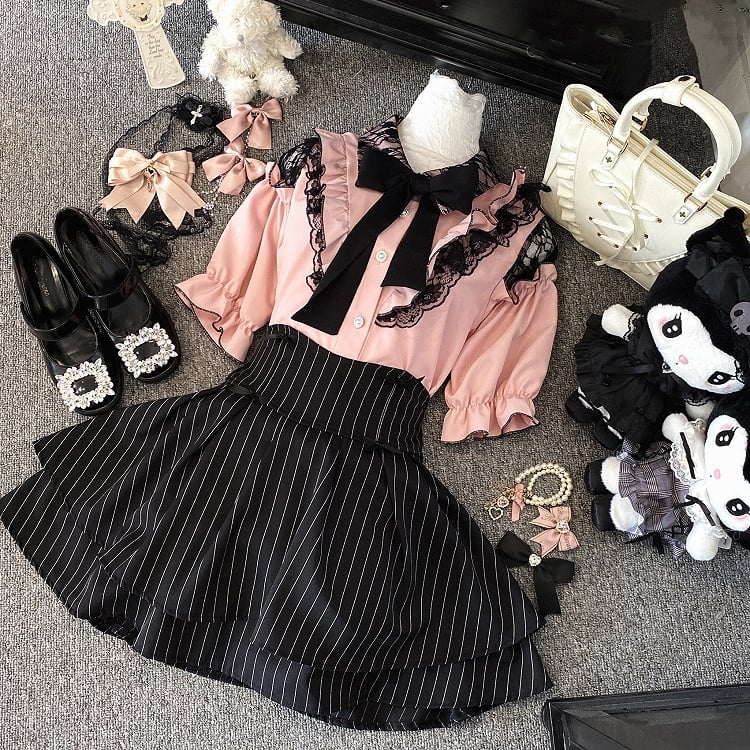 ピンクと白のオールドスクールロリータファッションドレス、蝶結びディテール、ロリータJSKセット