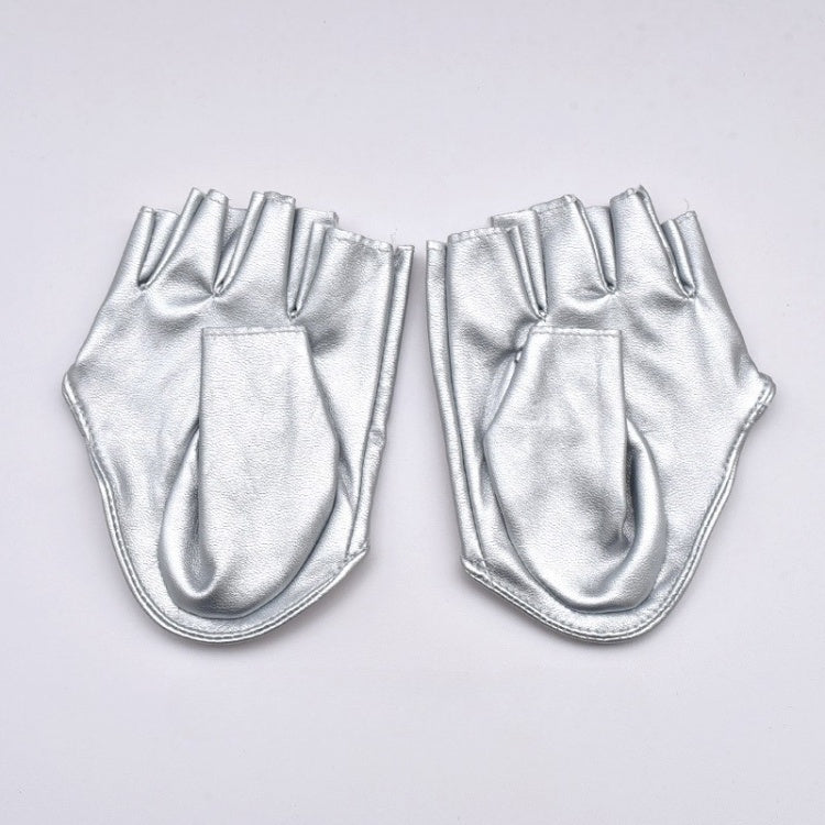 サイバーパンクシルバーの未来的なハーフフィンガーグローブ