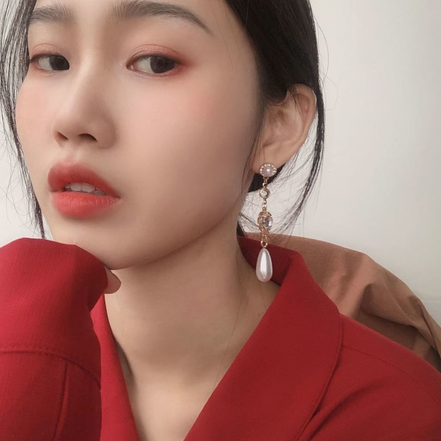 ハートラインストーンフェイクパール合金ダングルイヤリング
