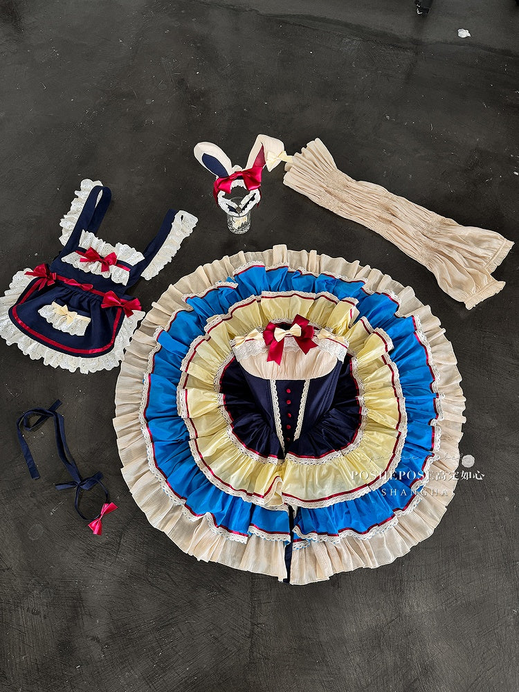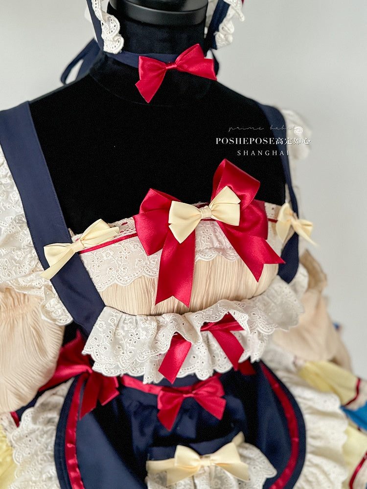 愛らしいダークブルーとレッドの白雪姫エプロンとドレスの組み合わせで、スイートメイド気分を味わいましょう!バスクウエストのストラップレスティアードフリルパフドレスがあなたの曲線美を際立たせ、エプロンがキュートなアクセントを添えます。どんなシーンにもぴったりのこの一着は、きっと周りの人を魅了することでしょう。