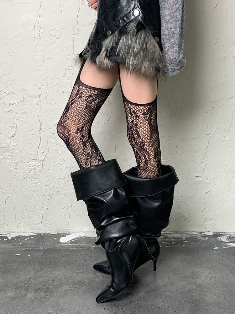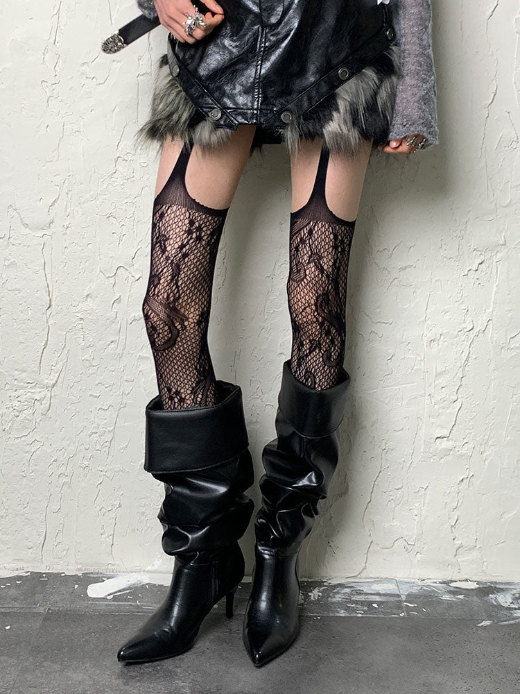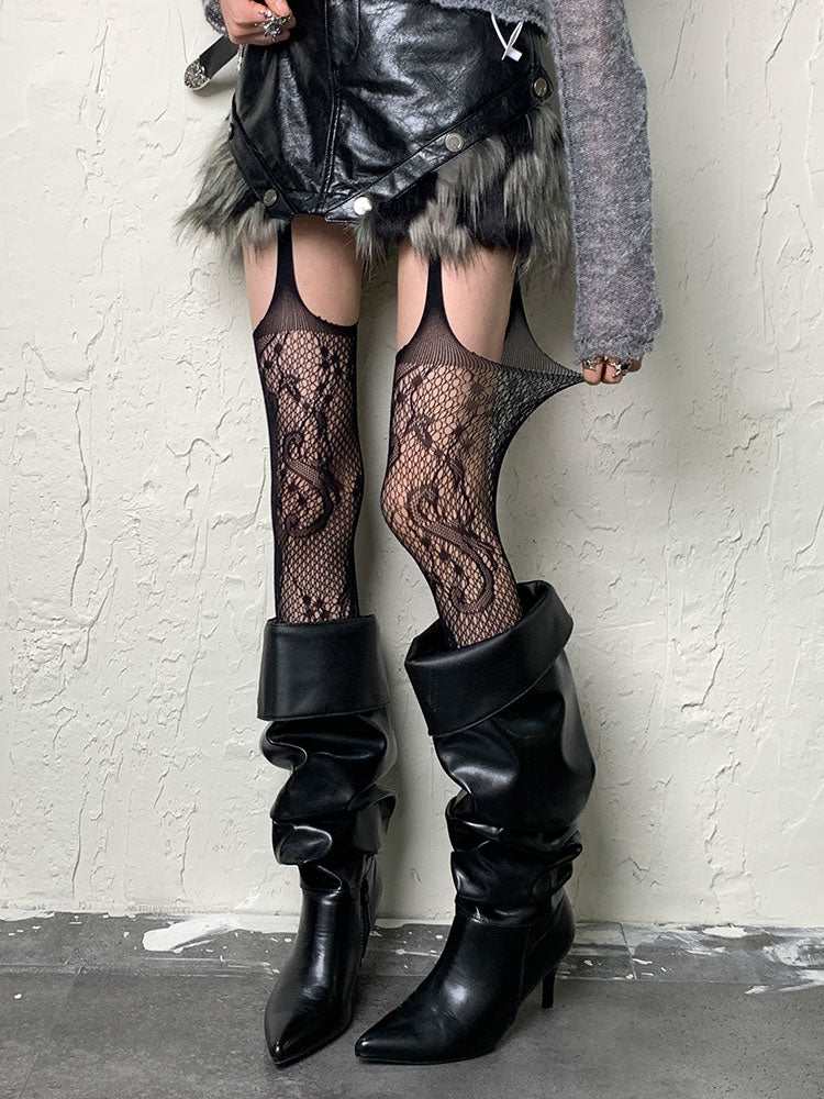 ダークゴシックブラックパンクホローアウトサスペンダータイツ
