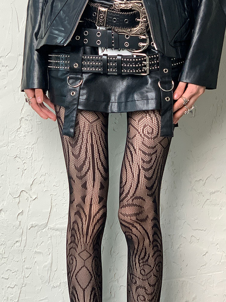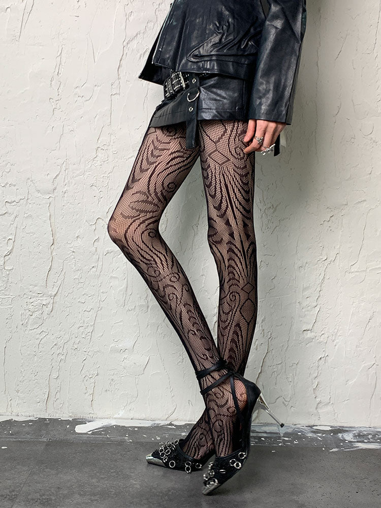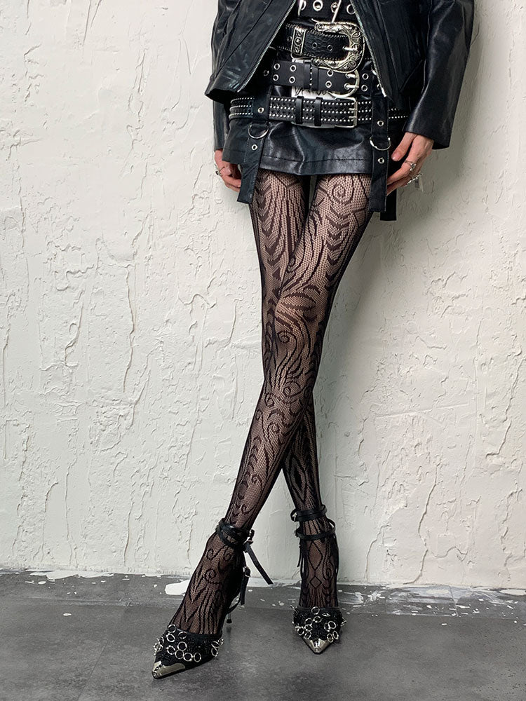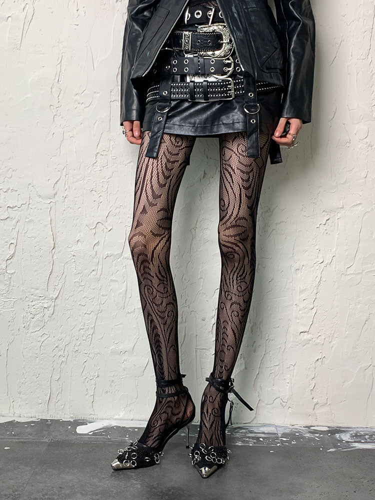 ダークゴシックブラックY2K不規則デザインホローアウトタイツ
