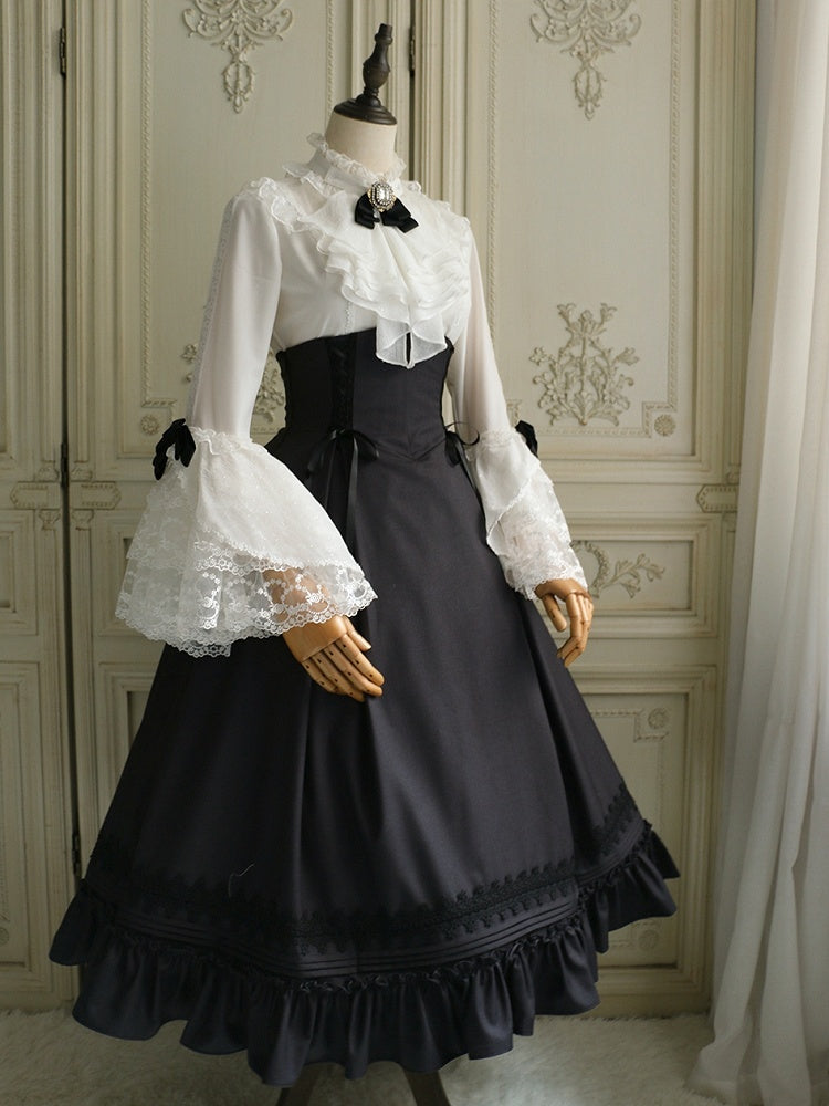 黒と白のオールドスクールロリータファッションドレス蝶結びロリータJSKセット