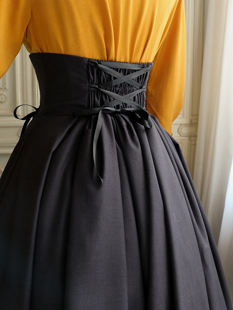 ダークグレーのエレガントなボーン入りコルセットベルト付きハイウエストロリータスカート