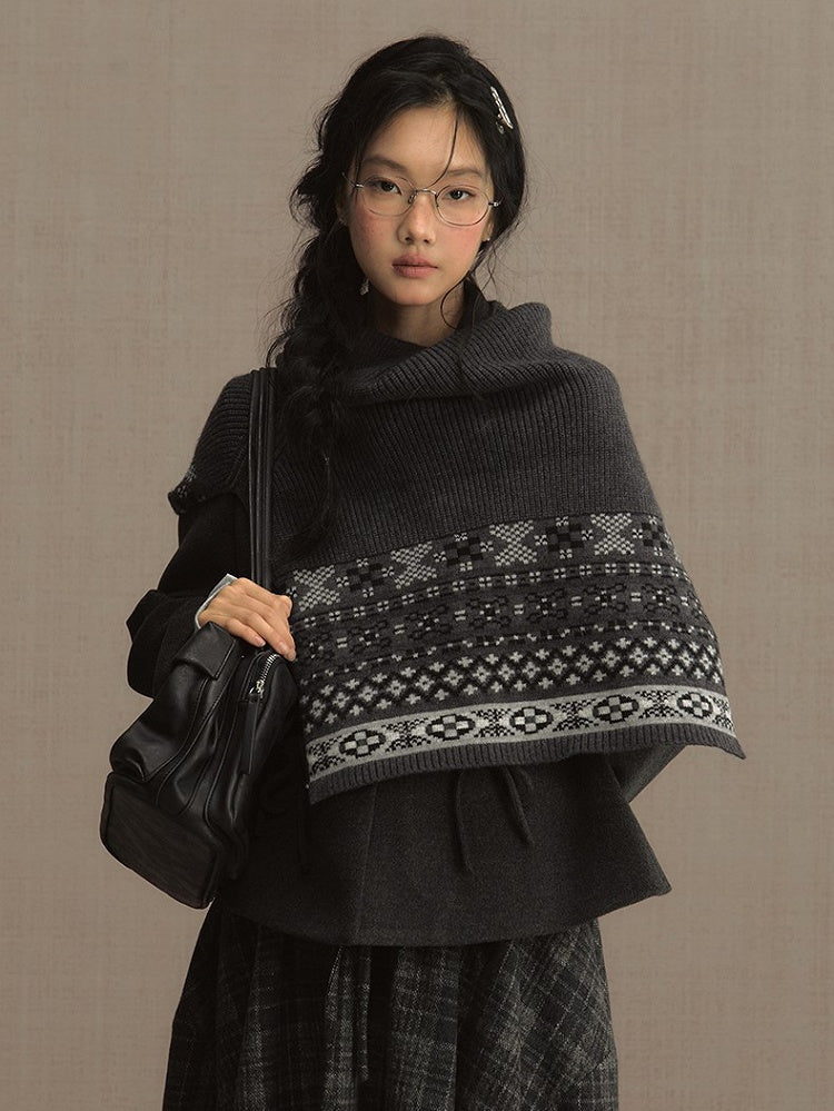 Dark Gray Peter Pan Collar Blazer with Bow Accent