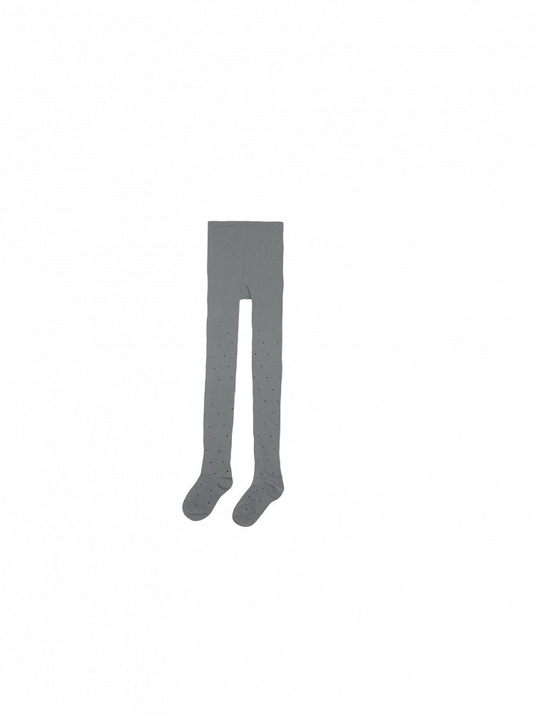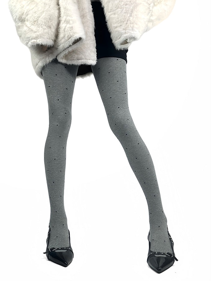 ダークグレー/ライトグレー/レッドの水玉模様の冬用タイツ