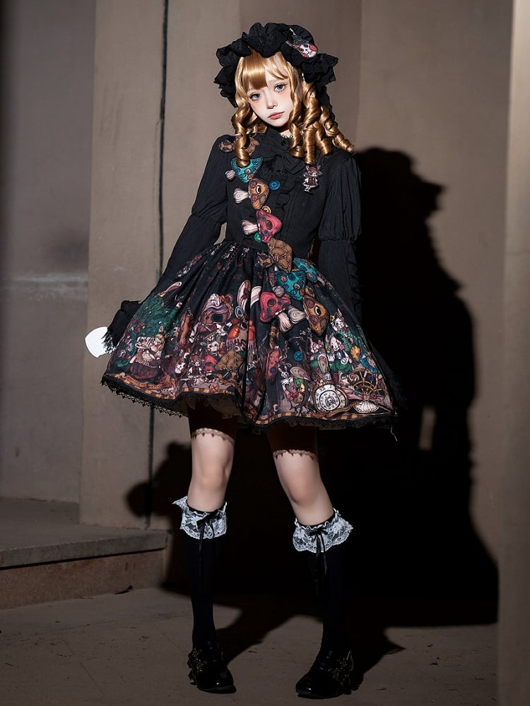 黒と白のオールドスクールロリータファッションドレス蝶結びロリータJSKセット