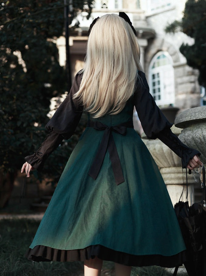 黒と白のオールドスクールロリータファッションドレス蝶結びロリータJSKセット
