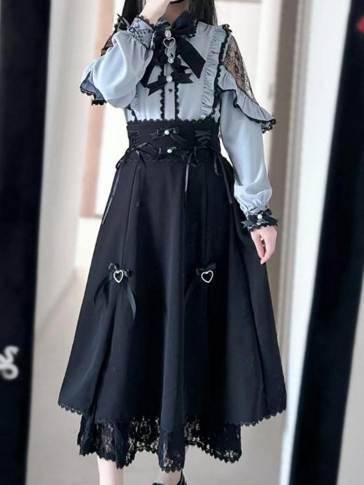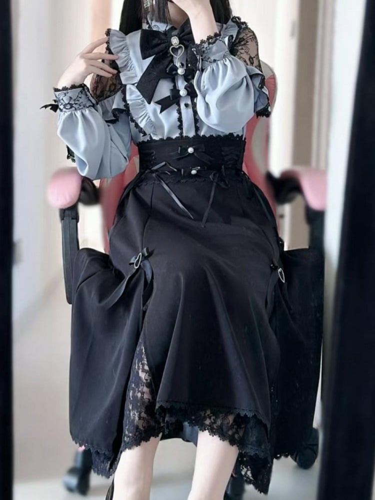 黒と白のオールドスクールロリータファッションドレス蝶結びロリータJSKセット