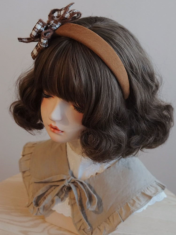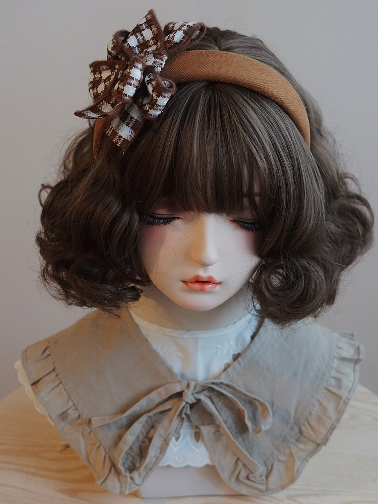 ブラウンのチェック柄の蝶結び装飾KC