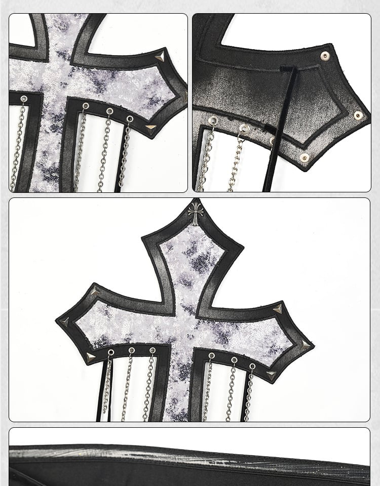 装飾されたクロスストラップレスサイバーパンクトップファッションY3Kチェーン未来的なブラックシルバースパンコールと