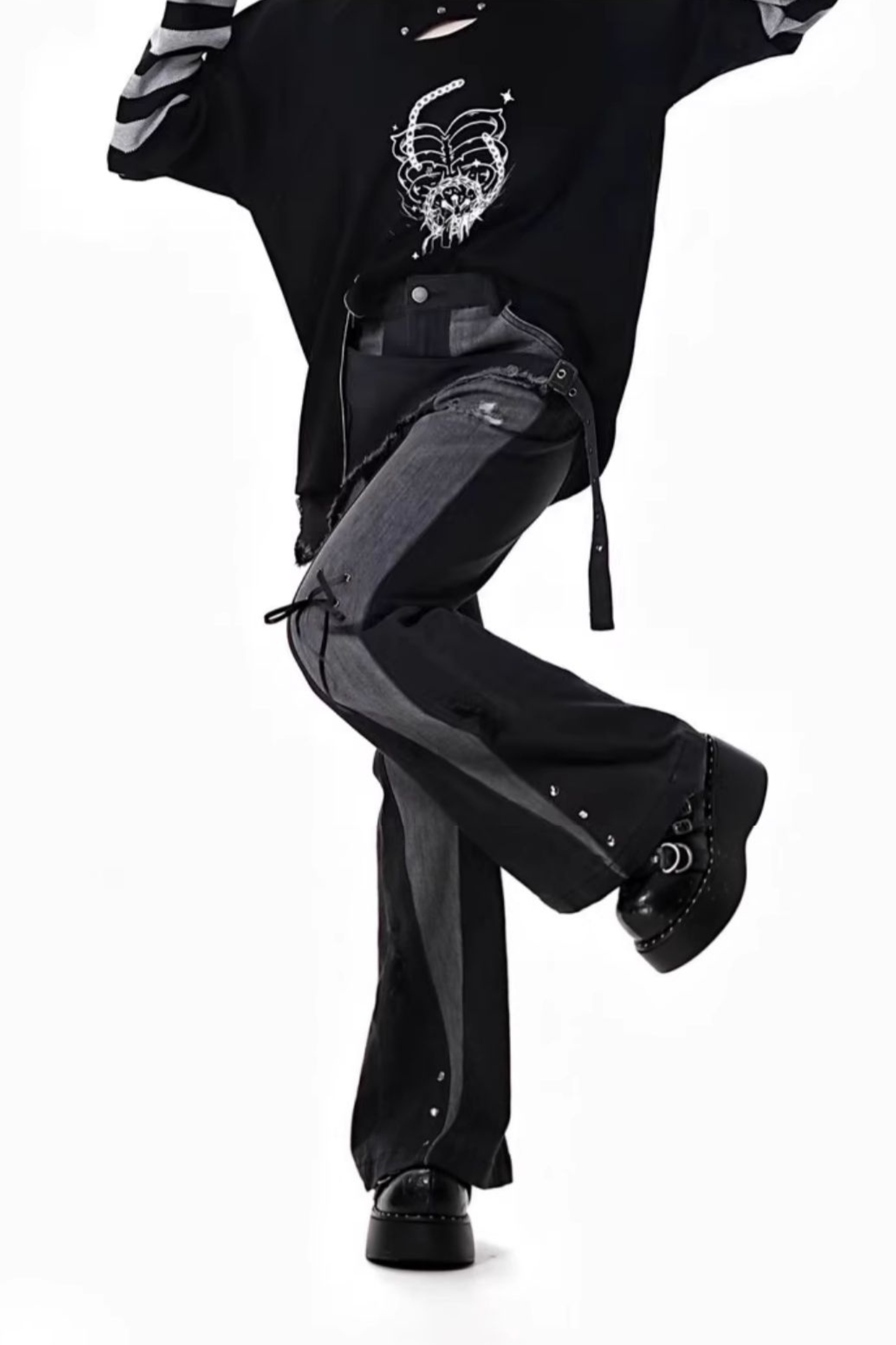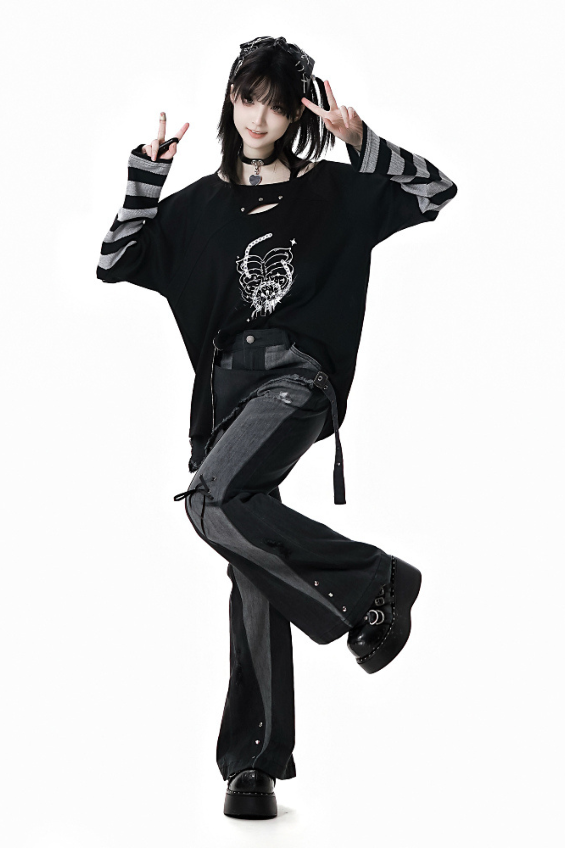 黒と白のオールドスクールロリータファッションドレス蝶結びロリータJSKセット