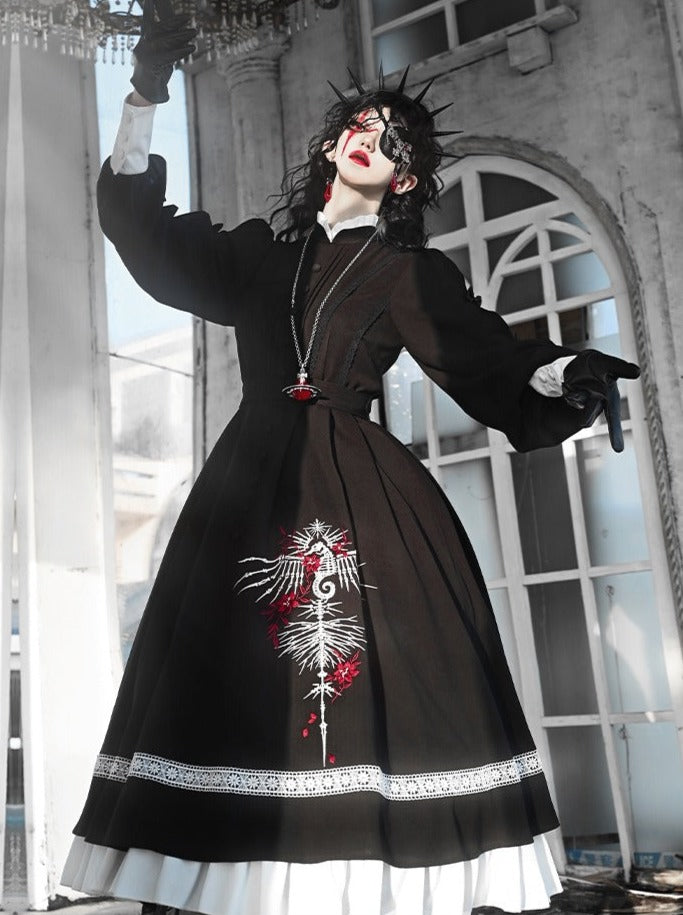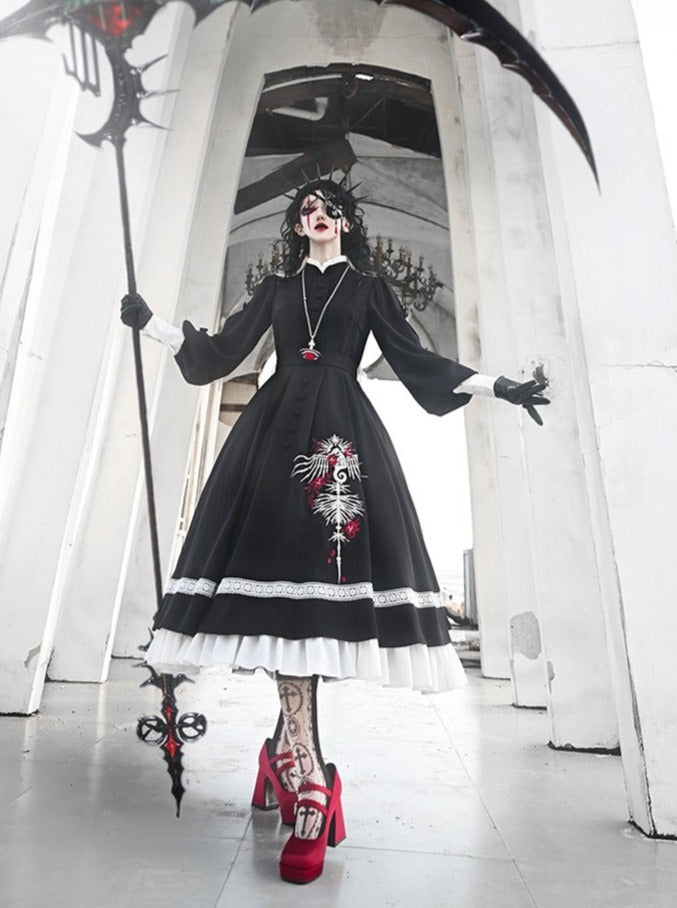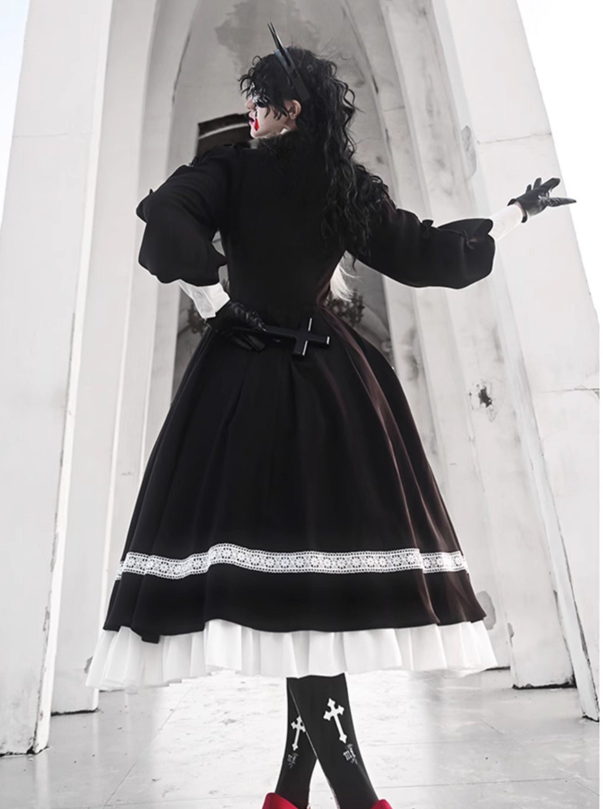 黒と白のオールドスクールロリータファッションドレス蝶結びロリータJSKセット