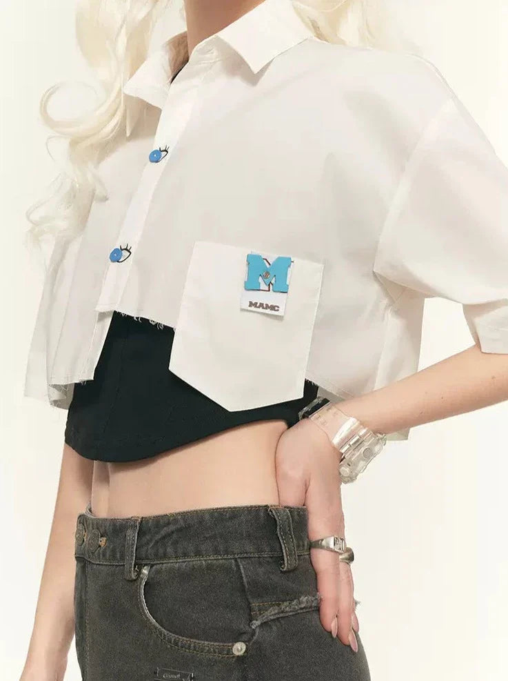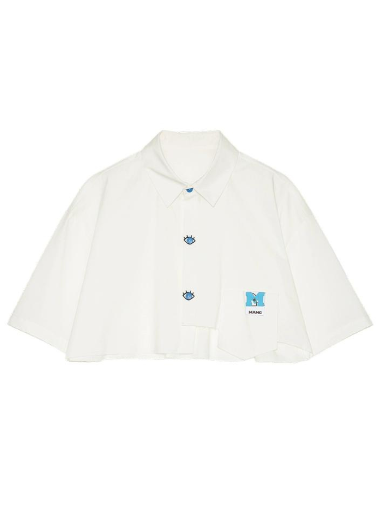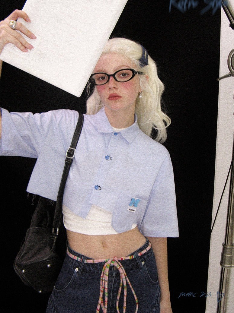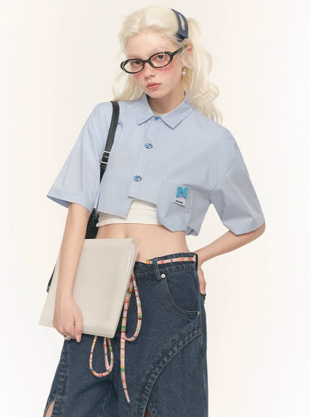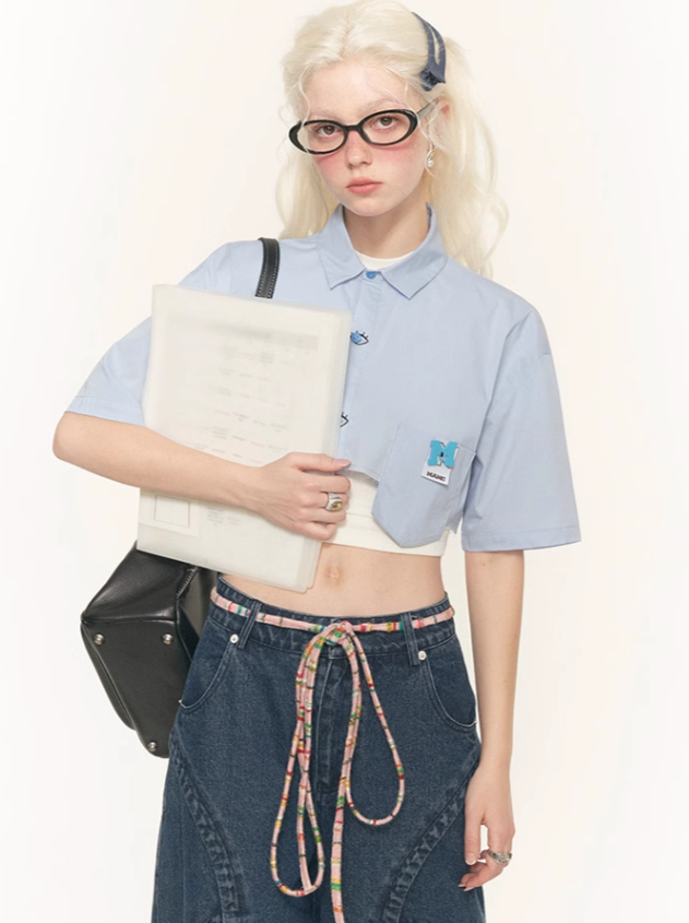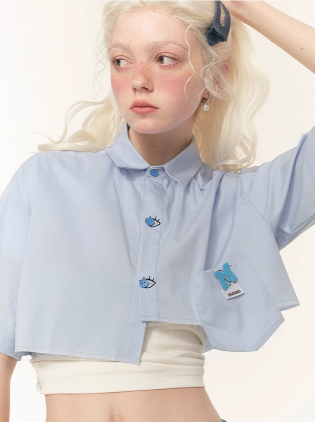 チャーミングなブルーのマントと目を引く半袖が特徴のデザインシャツ。個性的なスタイルを表現し、コーディネートにキュートなアクセントを添えるのに最適です。トレンド感を押さえたマストアイテムです。