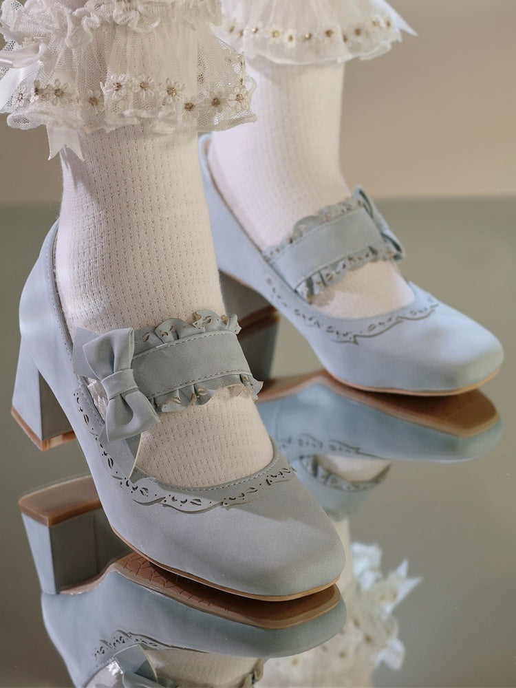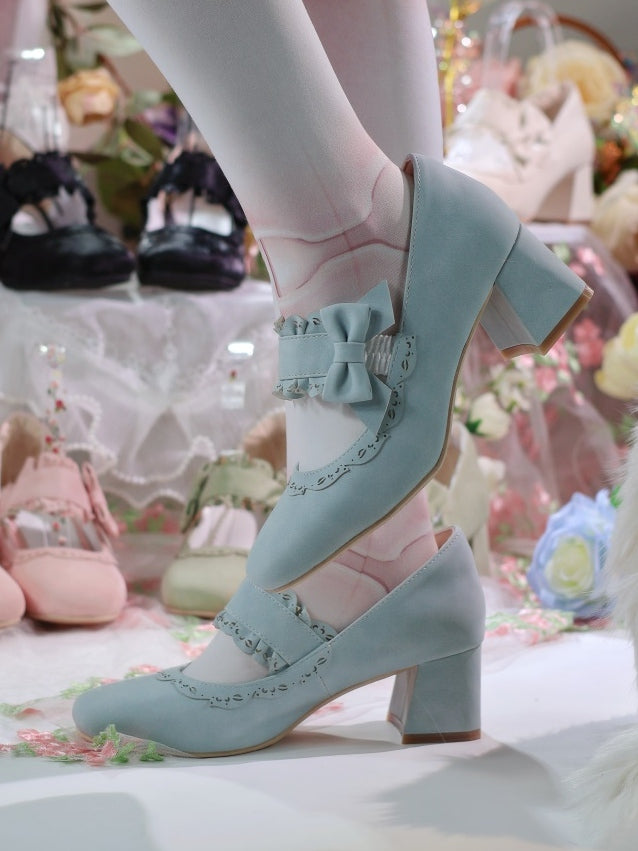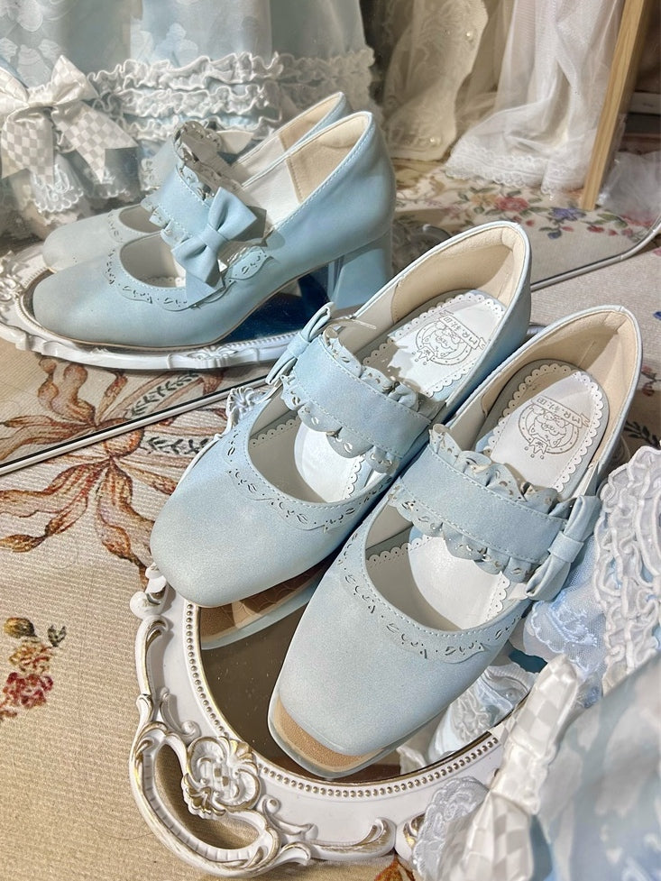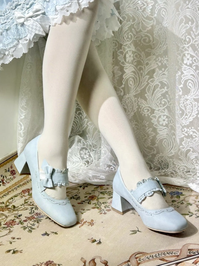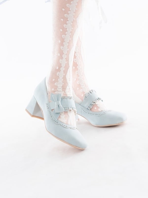 Slip-In Fit Design, High Block Heel with Bow Embellishments Blue Sweet Lolita High Block Heel Shoes