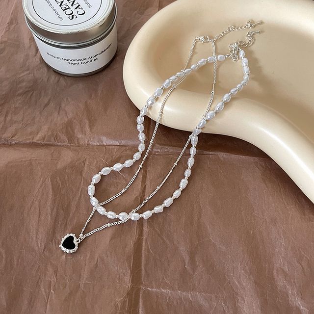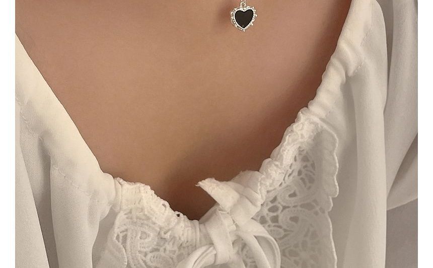 | 色: | ブラックハート&フェイクパールネックレス - シルバー&ホワイト |